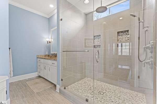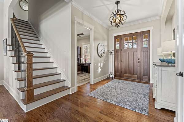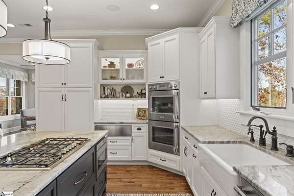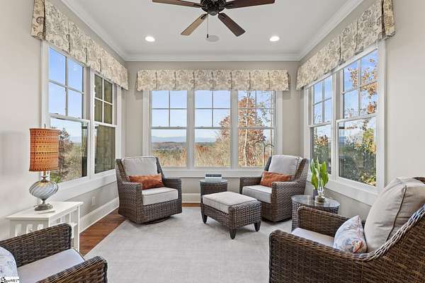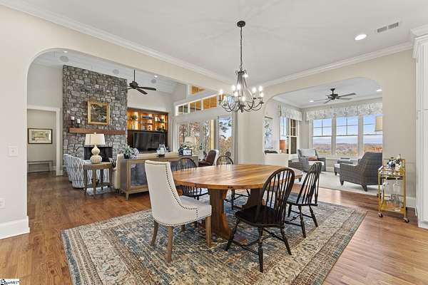 Perched high above, 551 Cliffs Vista Parkway offers sweeping long-range mountain views, refreshing mountain air, and convenient access to all the amenities that define the Cliffs at Keowee Springs lifestyle. Ever-changing vistas showcase the beauty of each season, creating a stunning backdrop from sunrise through sunset. Set on 1.87 acres, this homesite blends manicured landscaping with native hardwoods and pines, complemented by a large grassy lawn ideal for entertaining, hosting outdoor games, or just enjoying a relaxed evening gathered around the firepit. The elevated driveway and upper parking area enhance privacy, while additional convenient parking near the garage makes welcoming your guests easy. Built by Brad Kisker, this custom home is thoughtfully crafted for both family comfort and flow. The main level serves as the natural gathering space, featuring the primary suite, study, great room, kitchen, dining area, sunroom, laundry, and mudroom--all unified by warm wood flooring. The great room impresses with vaulted ceilings, a stone fireplace with gas logs, and custom built-in bookcases. Sliding screened doors extend the living space to the covered back porch, seamlessly blending indoors and out. Great for entertaining on beautiful days! The sunroom quickly becomes a favorite retreat--ideal for morning coffee, afternoon reading, or taking in the mountain sunsets. Remote-controlled shades in both the sunroom and kitchen allow the light to be tailored throughout the day. The kitchen is designed to inspire, whether for everyday meals or hosting friends and family. It features stainless steel appliances, an island with gas cooktop, double ovens with swing-style doors, a warming drawer, a walk-in pantry, and captivating views that elevate even the simplest tasks. Nearby, the main-level laundry includes a sink, abundant cabinetry, and direct access to the mudroom and garage. The primary suite is a peaceful retreat, complete with a spa-like bath with a rain shower and handheld features, dual vanities, and separate walk-in closets. Upstairs there are two guest bedrooms with their own ensuites and plush carpeting. A spacious unfinished walk-in attic is down the hall and offers easy access with a ton of storage. Outdoor living is a natural extension of the home. A covered patio, expansive grass lawn, and paver firepit create inviting spaces for both quiet moments and lively gatherings, all framed by panoramic mountain views. Full front and rear irrigation ensure the landscape remains pristine with minimal upkeep. Location is everything, and this home places you just moments from the exceptional amenities of The Springs and The Landing. Enjoy the Tom Fazio-designed golf course, clubhouse dining, fitness center, pickleball and tennis courts, scenic walking trails, and stroll to the soon-to-open Bistro Cafe for coffee and pastries. The nearby Beach Club offers a restaurant, pool, and lake and beach access with paddleboards and kayaks, while the Lake Club features two additional pools, dining, wellness classes, and direct access to Lake Keowee. For those interested in time on the water, boat slip leasing opportunities are available through the Keowee Springs POA. Conveniently located near the main gate of The Springs, the home offers easy access in and out of the community, with short drives to Six Mile, Pickens, Seneca, and Clemson, as well as straightforward access to downtown Greenville. A Cliffs Club Membership is available for a separate purchase, providing access to amenities across all seven Cliffs communities. Here, life is elevated--by the views, the setting, and the seamless connection between home, lake, and community.