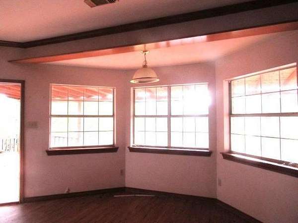 This sleek Modern home displays clean architectural lines and minimalist aesthetics. Open floor plans connect living areas seamlessly, while expansive windows provide abundant natural light throughout. This thoughtfully designed residence features three comfortable bedrooms and two and a half bathrooms. Floor-to-ceiling windows throughout the home create bright, airy spaces while showcasing peaceful rural scenery. The formal dining area particularly benefits from these expansive windows, offering unobstructed views of the surrounding countryside. The split bedroom floor plan provides privacy and functionality for daily living. A wood-burning fireplace serves as a striking focal point, adding warmth and character to the interior spaces. The attached two-car garage offers convenient vehicle storage. Outside, mature shade trees provide natural cooling and enhance the property's serene setting. The covered patio extends living space outdoors, while the inground gunite pool creates an ideal retreat for relaxation and entertainment. A gated entry adds security and privacy to the property. The nearby Fair Park Recreation Complex provides additional recreational opportunities for active lifestyles