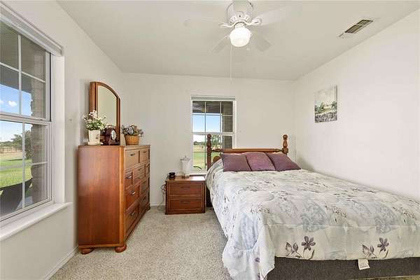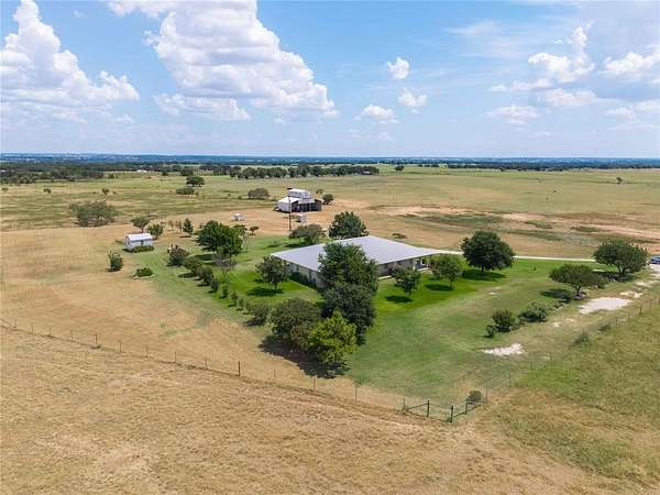 Come and meet your ideal Texas farm. Tucked away, a short distance from De Leon, this three bedroom, three bathroom, two car garage custom built beauty sits on 52.1 amazing acres. The moment you arrive, you will notice the peaceful country setting. The living room layout is perfect for gatherings and entertaining. The sizable wrap around porch extends the living area. The windows and french doors allow sunlight to enter the interior for a spacious feeling. The property includes fencing, cross fencing, working pens and an irrigation tank. There are 3 working wells. One serves the sprinkler system. Added features include a smoker, a small fruit orchard, and an open barn with a loft and bonus room. This property offers the perfect blend of country charm and modern convenience with schools and a hospital in close proximity. Call for your showing today!