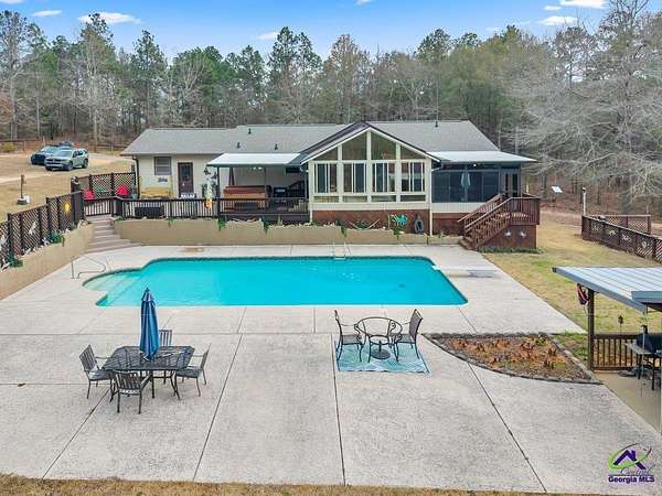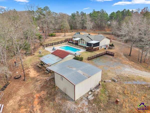 Escape the city for the perfect homestead! Discover your dream retreat! This exquisite brick home offers the perfect escape, nestled on two stunning acres surrounded by picturesque woods and abundant wildlife. Step inside and be captivated by the huge gourmet kitchen, featuring high-end cabinetry, soft-close doors, pull-out shelves, and gleaming granite countertops. Enjoy the convenience of a large laundry room, a bright Champion sunroom with custom tints and blinds, and an additional solarium for year-round enjoyment. The outdoor oasis awaits with a sparkling saltwater pool and a versatile pool house, ideal for a guest suite, extended family, or a private apartment. For the hobbyist or entrepreneur, a spacious red iron workshop, fully wired and plumbed, offers ample storage and a convenient lean-to. Cultivate your green thumb in the perfect garden space, then unwind in the therapeutic spa hot tub or host unforgettable gatherings in the dedicated grilling area. This meticulously maintained home boasts an epoxied garage floor and an encapsulated crawlspace for ultimate peace of mind. With a basement offering both inside and outside entrances, an RV hookup, a pole barn, and so much more, every detail has been thoughtfully designed for comfort and convenience. Embrace the changing seasons with a spectacular pool and outdoor area for spring and summer enjoyment, and a cozy woodstove to chase away the chill in fall and winter. This is more than a home; it's a lifestyle waiting for you!