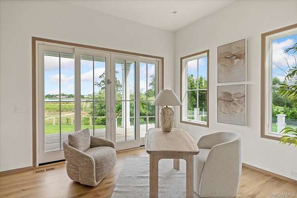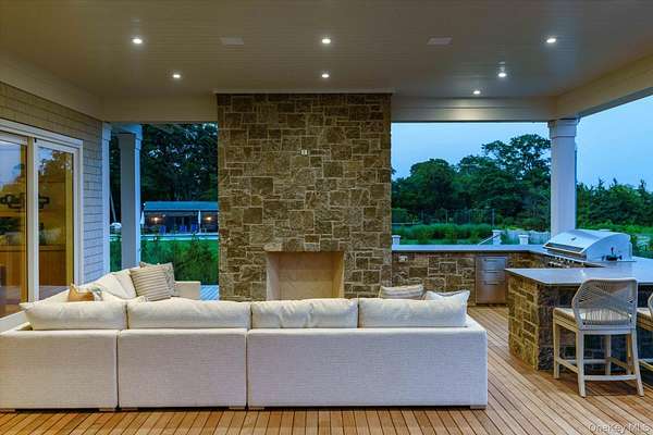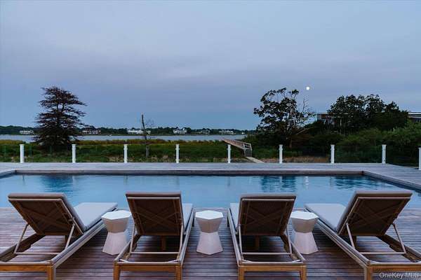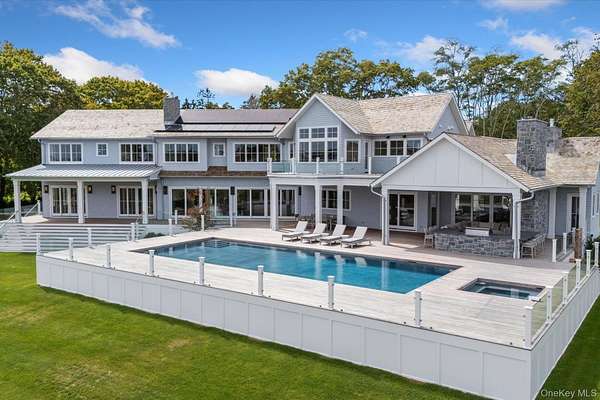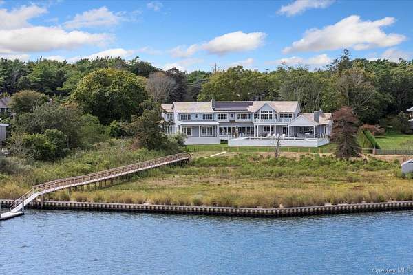 Discover the ultimate in luxury living on 3 private acres with 225 feet of bulkhead along the serene Quantuck Creek in Quiogue. This stunning new construction estate offers unparalleled privacy, deep water dock, panoramic open creek views, and resort-style amenities crafted for both relaxation and entertaining. Step through a beautiful white oak foyer into a home rich with craftsmanship, featuring custom trim work, curated finishes, and a thoughtfully designed open layout. At the heart of the home is an oversized chef's kitchen with marble countertops, a walk-in pantry, and an inviting great room that flows effortlessly into two elegant living areas, each with its own fireplace. The first floor includes two en suite bedrooms, two private offices, a laundry room, and two stylish half baths with marble countertops, all connected to a radiant-heated three-car garage. Upstairs, a dramatic balcony opens to a light-filled family room. The private primary suite wing offers a luxurious retreat with a sitting room, expansive walk-in closet, spa-like marble bath, and a covered veranda with stunning views of Quantuck Creek. Every detail of this home was thoughtfully curated for elevated living. With eight spacious bedrooms, including a private guest suite and junior primary, there's room for everyone to feel at home. The residence features nine full bathrooms and three elegant half baths, including a dedicated pool bath for effortless outdoor entertaining. Three well-appointed laundry rooms with a total of five washers and dryers offer everyday ease and efficiency. Sophisticated materials are found throughout: marble countertops in the kitchen, primary suite, junior suite, and powder rooms, and quartz finishes in the secondary bedrooms. Comfort meets innovation with hydronic radiant floor heating in the primary suite and garage. Smart home features include a full Sonos sound system, Lutron RA-3 smart lighting, and pre-wiring for automated shades in all bedrooms. Outdoors, enjoy a covered deck with a built-in BBQ and bar, an outdoor fireplace, and a stunning pool and spa, all overlooking the peaceful waters of Quantuck Creek. A home gym, playroom, and flexible living spaces round out this exceptional residence. 551 Main Street is more than a home, it's a lifestyle. A rare opportunity to own a modern waterfront estate in one of the Hamptons' most coveted enclaves