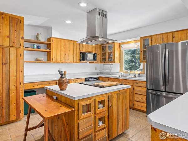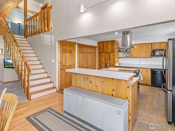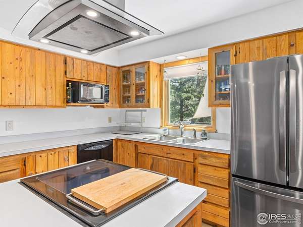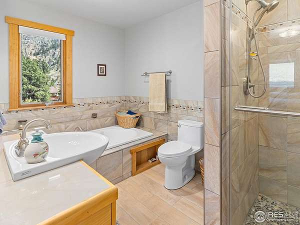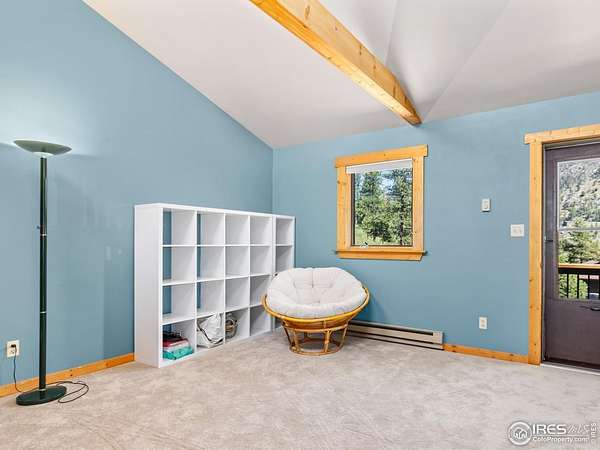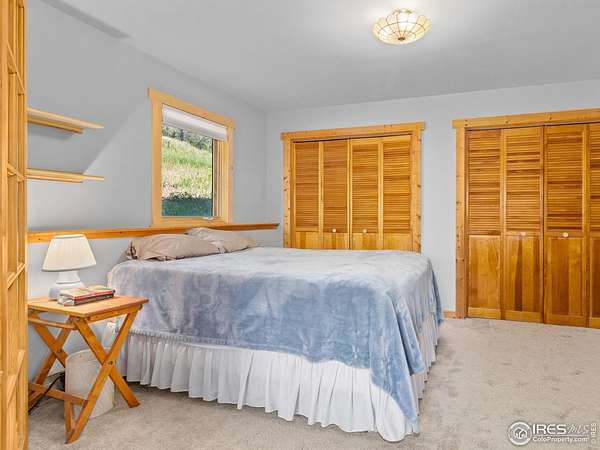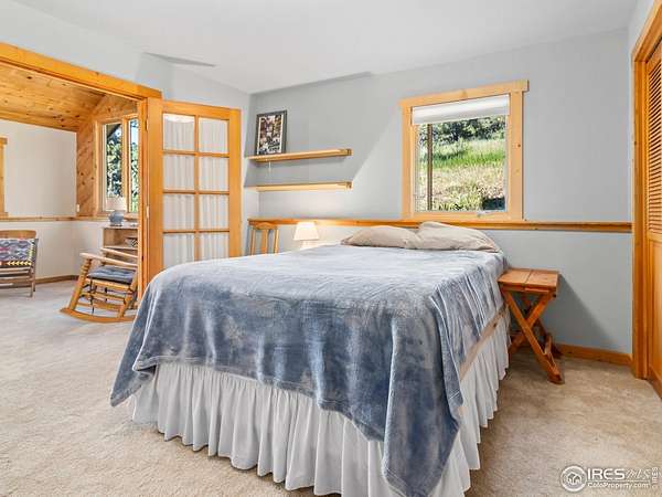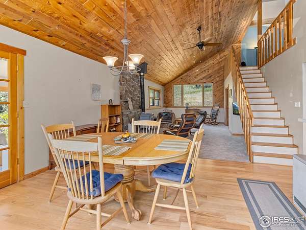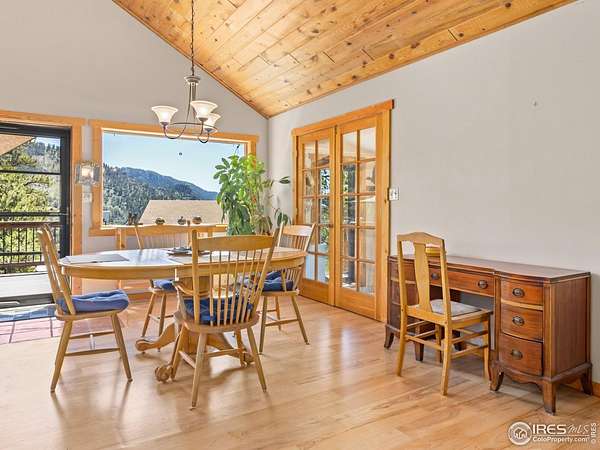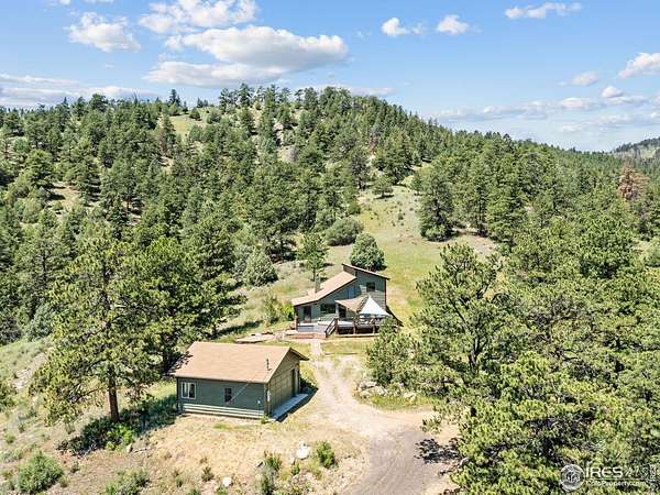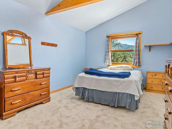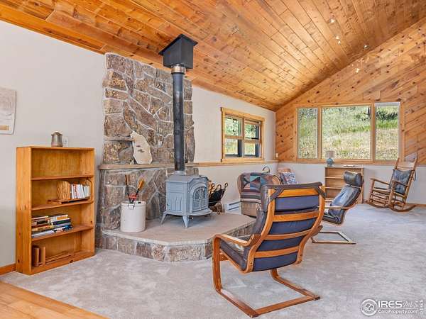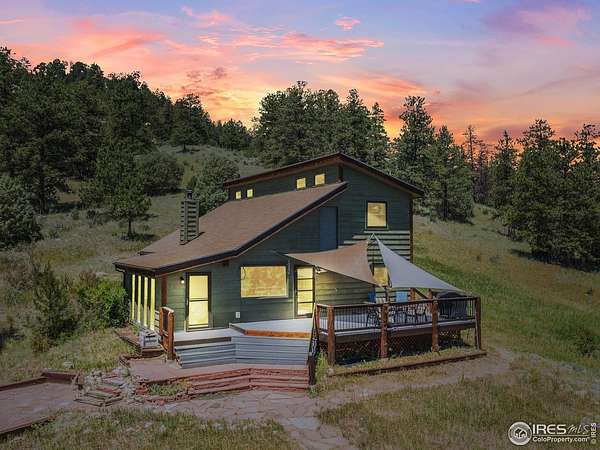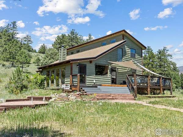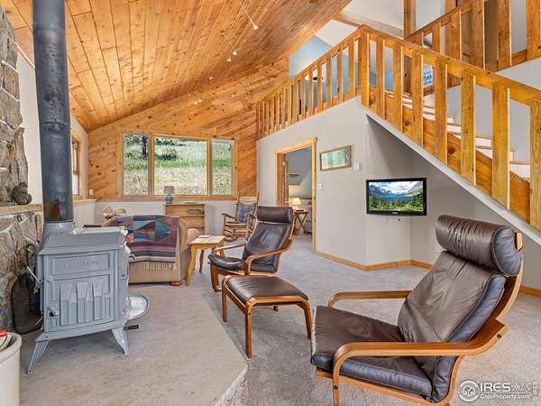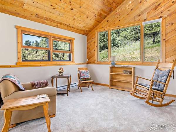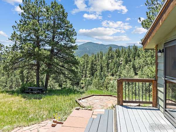Let the mountains elevate your spirit in this peaceful retreat. Nestled on 2.07 acres in The Retreat, Glen Haven, this 1,736-square-foot cabin features 2 bedrooms, 2 bathrooms, plus a versatile loft. Enjoy big views of Crosier Mountain and the valley from every window, filling the living space with natural light and breathtaking scenery. The warm, vaulted wood ceilings enhance the warm ambiance, while the wood-burning stove invites you to unwind on chilly evenings with a good book by the fire. The main level boasts an open floor plan combining the living room, dining area, and kitchen-perfect for hosting family and friends. A primary bedroom with an ensuite bath offers comfort and privacy, and a hot tub/sunroom provides a relaxing escape. Step out onto the spacious composite deck to take in the surrounding mountain vistas, ideal for lounging or dining outdoors. Upstairs, a bright open loft offers flexible space that can serve as a third bedroom, TV room, library, or office. There is also an additional bedroom and a three-quarter bath on this level. Home has an energy efficient Steffis heater. Look for information on this inside the property. The detached two-car garage is currently configured as one-car storage and a studio space. Set in a tranquil mountain environment, this home is close to hiking trails and offers endless opportunities to explore Colorado's stunning national forests, nearby Estes Park, and Rocky Mountain National Park.