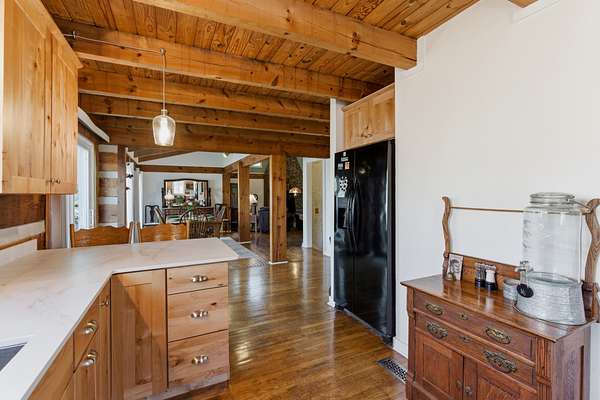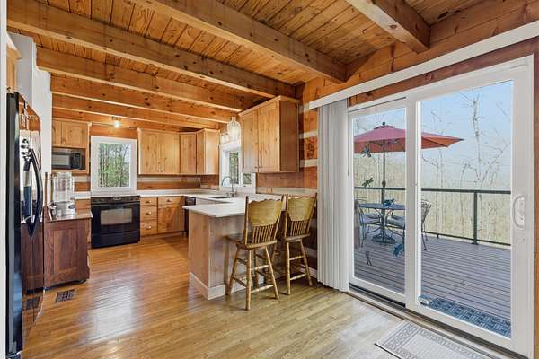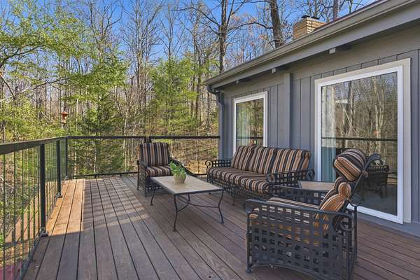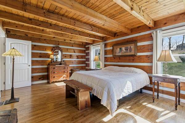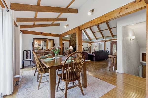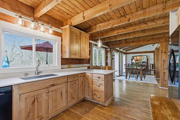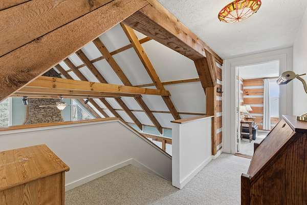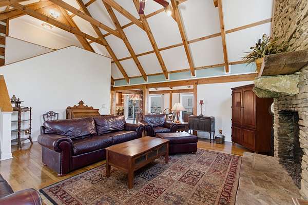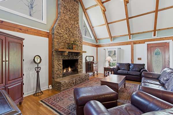 Inside, the home delivers the rustic charm buyers dream of, with exposed wood beams, vaulted ceilings, and an open living space anchored by a stone fireplace that creates the feeling of a true mountain retreat. Natural materials and wood finishes bring warmth throughout, while the thoughtful layout allows each space to feel both cozy and connected. With four full bathrooms thoughtfully distributed throughout the home, the layout offers both comfort and flexibility for everyday living and hosting guests. This is a home that feels collected over time, authentic, welcoming, and rich with character.