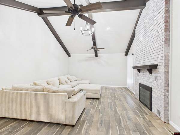 - Carpet, Ceiling Fan(s), Split Bedroom Plan, Vaulted Ceiling(s), Vinyl Floors, Walk in Closet