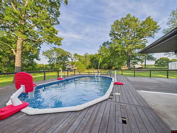 Welcome to your dream home! Conveniently located just minutes to town and Tracy Ferry Marina. Nestled on a beautifully 2.50 acre m/l lot, this spacious ranch-style residence offers the perfect blend of modern upgrades and classic charm. The inviting front porch sets the tone as you enter this thoughtfully updated property. Step inside to discover a stunning, fully remodeled kitchen featuring white cabinetry, butcher block countertops, a large center island, modern light fixtures, and stainless steel appliances -- ideal for both everyday living and entertaining. The open layout provides a bright and airy feel with seamless flow throughout the main living areas. Out back, enjoy your private oasis complete with a sparkling pool -- perfect for relaxing or hosting summer gatherings. The expansive yard hosts a shop and massive chicken coop and plenty of room for recreation, gardening, or simply enjoying the peace and privacy of your own space.