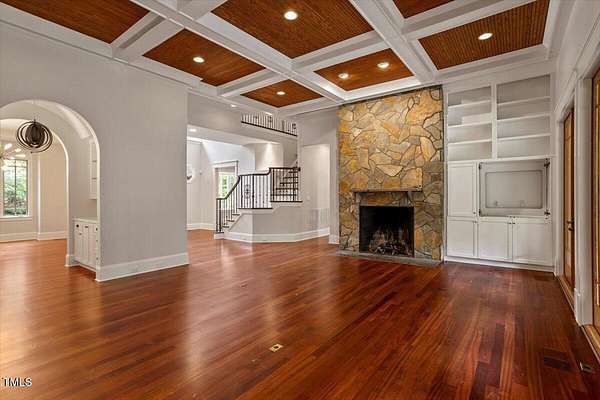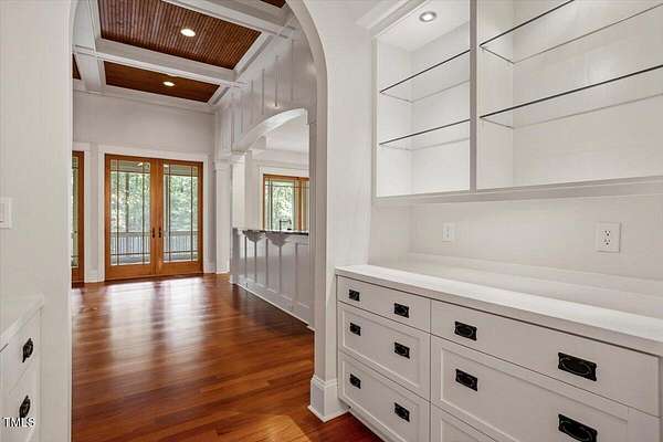 - Bathtub/Shower Combination, Beamed Ceilings, Bookcases, Built-In Features, Butler's Pantry, Ceiling Fan(s), Central Vacuum, Chandelier, Crown Molding, Double Vanity, Dressing Room, Dual Closets, Eat-In Kitchen, Entrance Foyer, Granite Counters, High Ceilings, In-Law Floorplan, Kitchen Island, Nursery, Open Floorplan, Pantry, Primary Downstairs, Recessed Lighting, Second Primary Bedroom, Separate Shower, Shower Only, Smart Camera(s)/Recording, Smooth Ceilings, Soaking Tub, Tray Ceiling(s), Vaulted Ceiling(s), Walk-In Closet(s), Walk-In Shower, Water Closet, Wet Bar
