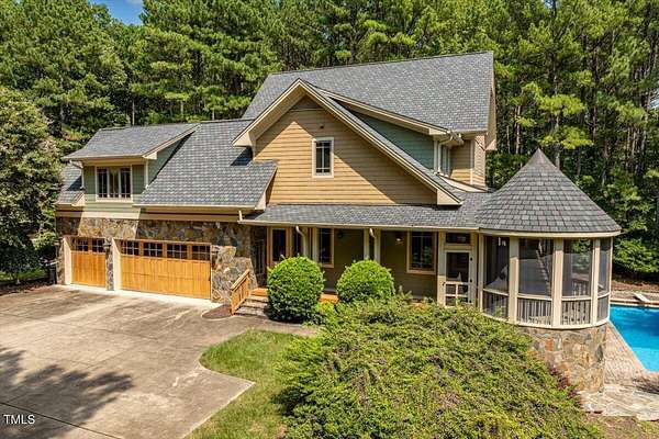 Buy a home & a Lifestyle. Discover a rare blend of luxury, privacy, & convenience in this custom home nestled on 4.29 acres of manicured land. Located from key routes just minutes from Cary, Chapel Hill, Airport, & Shopping offering the best of both worlds. Peaceful seclusion with unbeatable accessibility. Features include 3 car garage with ample storage & workspace. 2 cozy fireplaces. Private study perfect for remote work. Home Theatre for immersive entertainment. Inground heated, saltwater swimming pool surrounded by lush greenery. Gorgeous, enclosed stone patio with screened surround, accessible from the Primary Suite, family room, & breakfast room. In addition to/from the lower level. Expansive grounds ideal for entertaining, gardening, and/or simply unwinding. Many recent updates including Roof. Whether it's a movie night, working from home, or just quiet time by the fire, this home is designed to elevate every moment. Lots of walk in accessible storage throughout. Guest Quarters. Nanny's Quarters. Craft/playroom. Many options. You decide. Finished basement is a walk out level to beautiful patio and inground pool. So much more. Too much to list!