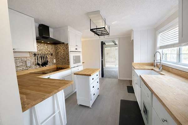 Peaceful country living with modern style and endless possibilities. Welcome to this beautifully remodeled 3-bedroom, 2-bath home on 4.4 private acres surrounded by nature. Whether you're looking for space to spread out, hunt, fish, or simply enjoy the quiet of the countryside, this property offers the perfect blend of privacy and modern farmhouse charm. Inside the main home, you'll find a beautiful updated interior featuring upgraded lighting, custom barn doors, wood beams, and stunning wood plank ceilings that create warmth and character throughout the living spaces. A hidden bookshelf door in the family room adds a unique design touch and opens into the spacious primary suite. The modern farmhouse kitchen is designed with butcher block countertops, shaker cabinetry, mosaic tile backsplash, farmhouse sink, hanging pot rack, built-in microwave, and a new cooktop with custom hood vent, making it the perfect space for everyday living. The primary bathroom offers an extra large spa-like jetted garden tub, to treat yourself and relax after a long day. Step outside and enjoy the peaceful 4.4-acre setting with a pond, ideal for fishing, wildlife watching, or outdoor recreation. The property is well-suited for hunting, homesteading, gardening, or simply enjoying wide open space. One of the most unique features of this property is the custom-built shipping container studio, thoughtfully designed with climate-controlled living space, full bathroom, dedicated storage, and a workshop area. Equipped with water, electricity, and A/C, this versatile space is perfect for a Guest or in-law suite, Creative studio or home office, Homeschool space, Hobby workshop, Airbnb or rental potential, or your own Private retreat. Tucked away with only a few homes nearby, the property offers the privacy of country living while still being conveniently located just minutes from Hwy 84 and approximately 10 minutes from Valdosta, Lakeland, and Moody Air Force Base. Eligible for USDA Financing.