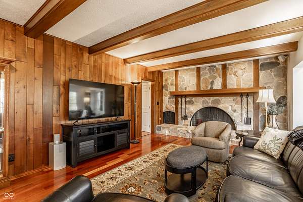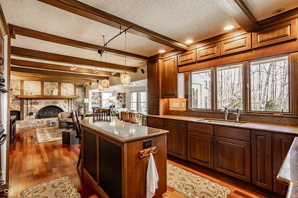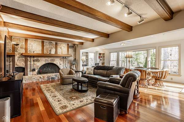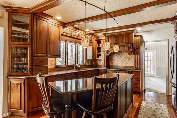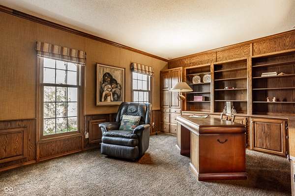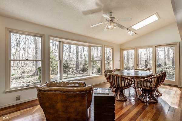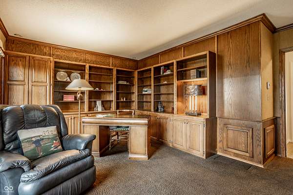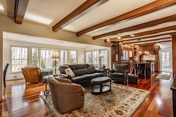 Stunning, custom built one owner estate in perfect Muncie location. Private views out every window, yet close to all amenities. Expansive family gathering area with beautiful fieldstone fireplace, large windows, custom built-ins and solid cherry finishes. Updated kitchen complete with custom cabinets, quartz counters, double ovens, induction cooktop and warming drawer. Main level is completed with a spacious living room, dining room, library and office with tons of built-in storage. Upper level boasts 4 generous bedrooms, tons of closets and upstairs laundry. Sunroom takes in the wooded landscape wrapped in casement windows and directly accesses the blue stone patio complete with water feature. A nature lover's dream--densely wooded, fruit trees, garden plots and pasture. See it today!!! *Additional acreage available in two separate 12 acre parcels on both sides of the home: BLC 22093928 and 22093903.