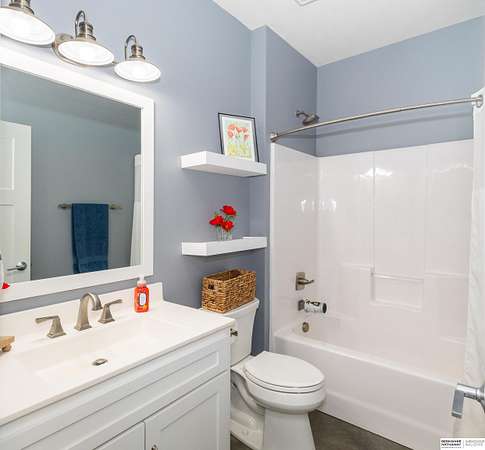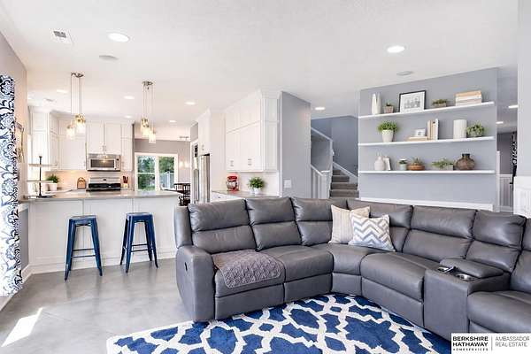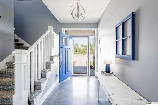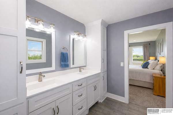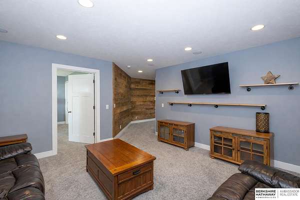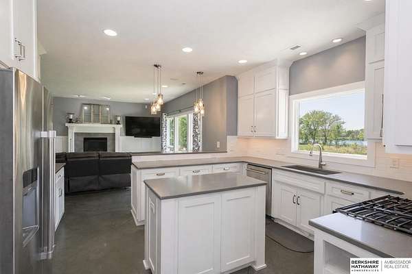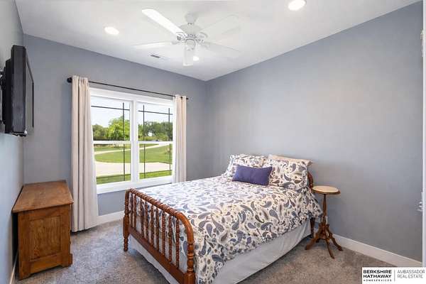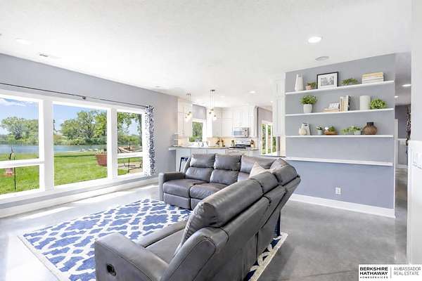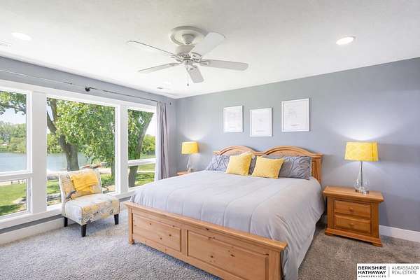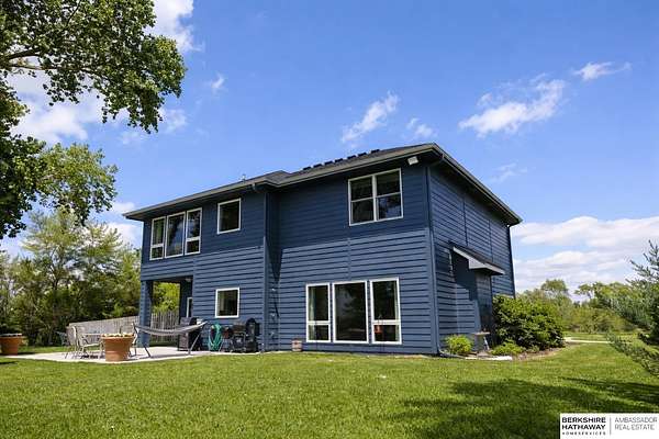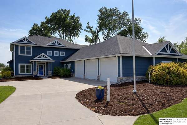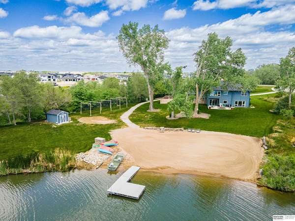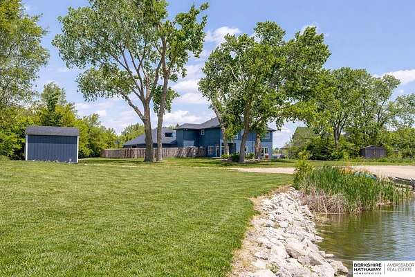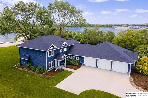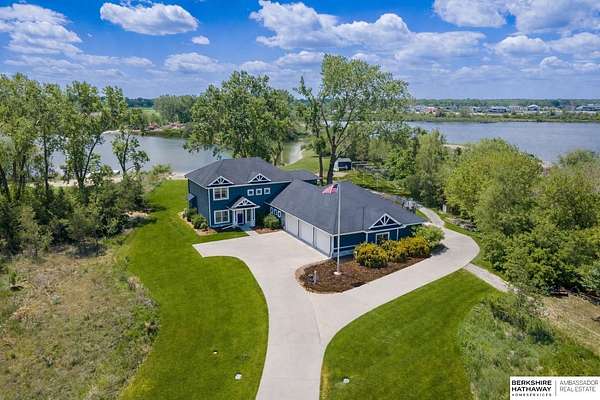 Ken Bartholomew, M: 402-740-6701, ken.bartholomew@bhhsamb.com, https://www.bhhsamb.com - Imagine mornings on your private dock with 325+ feet of shoreline across 2.69 acres in the sought-after Timber Shores lake community. Here, lake living means two private lakes - a peaceful 7-acre no-wake lake with two docks perfect for fishing and quiet reflection, plus a 34-acre recreation lake for boating, skiing, sailing, and paddleboarding. Built in 2016, this custom two-story home offers ~3,436 sq ft with 4 bedrooms, 4 baths, and an impressive 6-car tandem drive-through garage. Set at the end of a quiet cul-de-sac just minutes from Omaha, the property blends modern comfort with the natural beauty of one of the area's most unique and rarely available waterfront settings. Opportunities to own this much private shoreline and acreage this close to Omaha are rarely available. Some photos were taken previously and may reflect seasonal conditions; select images have been digitally prepared, including