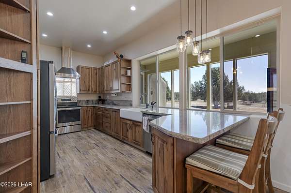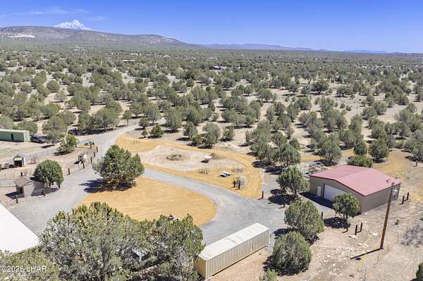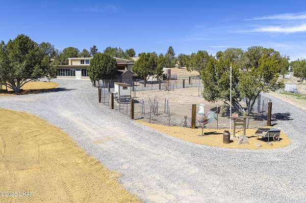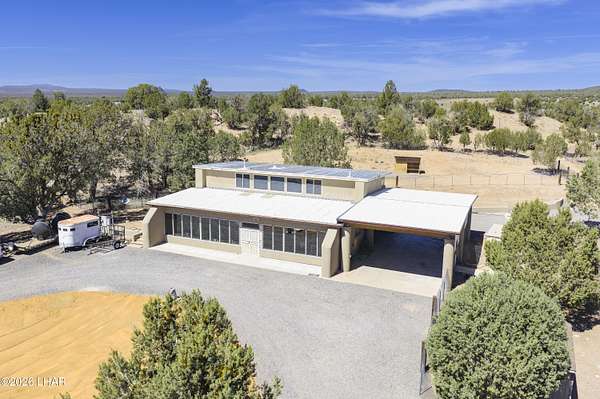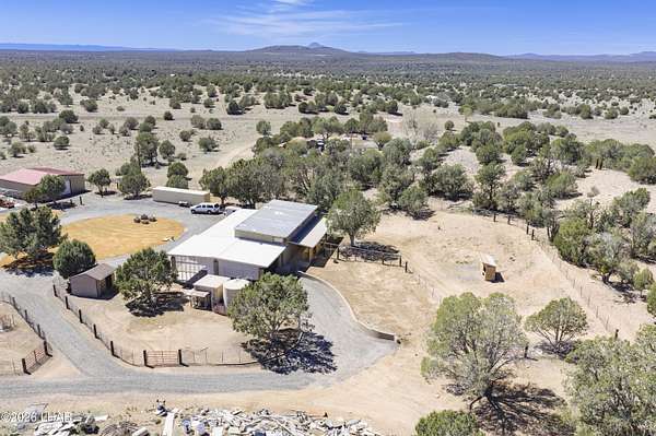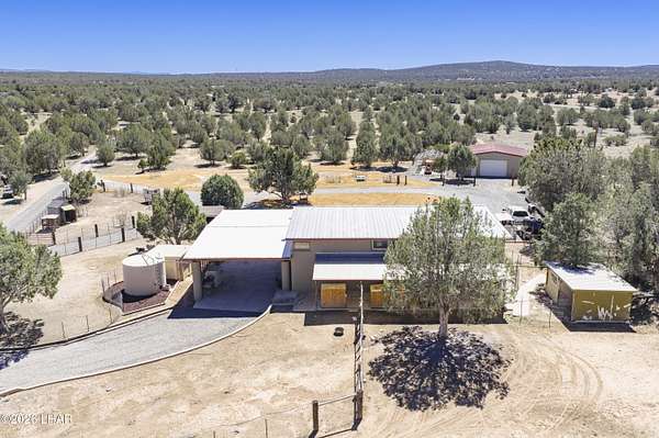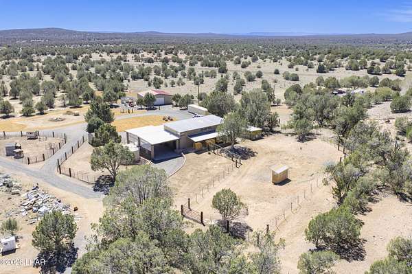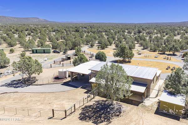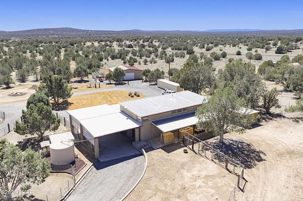 Escape the hot summer temps & come to Coconino County where the sunshine meets the pine trees. Enjoy this beautiful home on 20 acres just 22 miles from Williams. A closer look at this property you'll notice it sits on 20 fenced acres, has power & paved roads all the way from town, ample pinion pine trees, an insulated 40x40 shop, a handful of conex containers, and pens/coops/room for all the animals. Stepping inside you'll pass through the large 10x50 attached green house, then be greeted by newly remodeled kitchen w/ hickory wood kitchen cabinets, granite countertops, luxury vinyl plank floors. Bountiful storage w/ layered cabinets, walk in pantry and a cellar. Don't forget the oversized laundry & mud room that can be access from the 26x42 covered drive-thru carport. The master bedroom and bath are located on the main floor, with room for two extra guest quarters that share a bathroom on the second floor. The 3rd bathroom is located off the living room on the main floor. The house also has a whole house H2O filtration system, a 6k gallon galvanized water storage tank, pellet stove that's only a couple years old and the best part is this rammed earth home stays cool in summer summer and warm in the winter. By maximizing Mother Nature's sun the house is positioned on the property in such a way that the large green house windows soak in the sun during winter but are hidden from the warmer summer sun, keeping the home cooler during the warmer months. Call today to learn how to make this spectacular property yours!