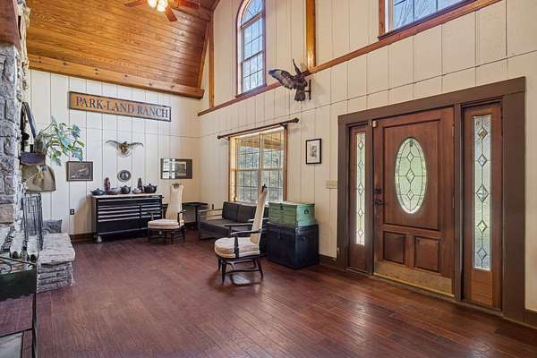 Set on 4.34 private acres, this inviting two-story home features 4 bedrooms, 3 bathrooms and 2,328 sq. ft. of comfortable living space. Architectural details include elegant bricked archways and two stone fireplaces that adds warmth and rustic charm throughout.