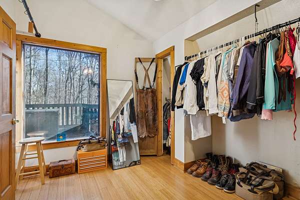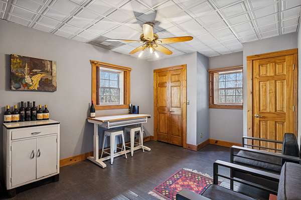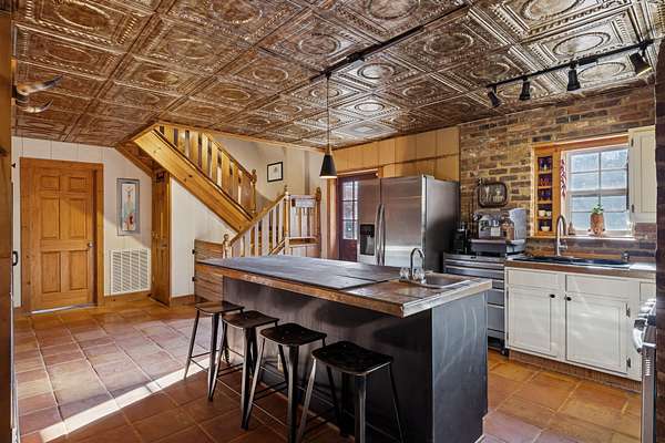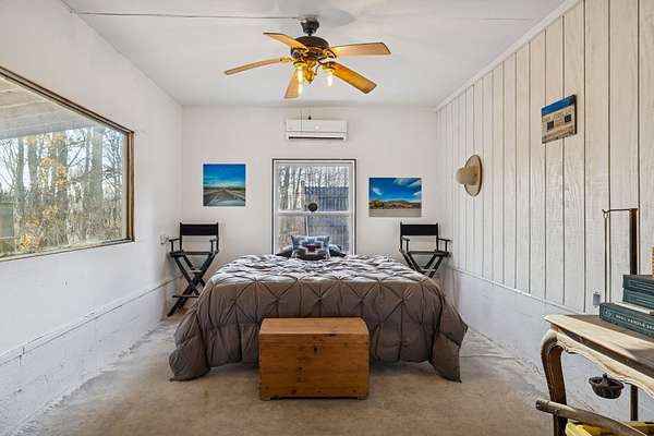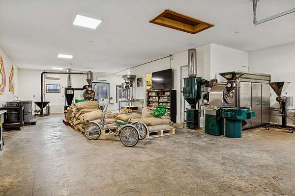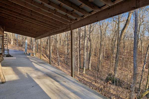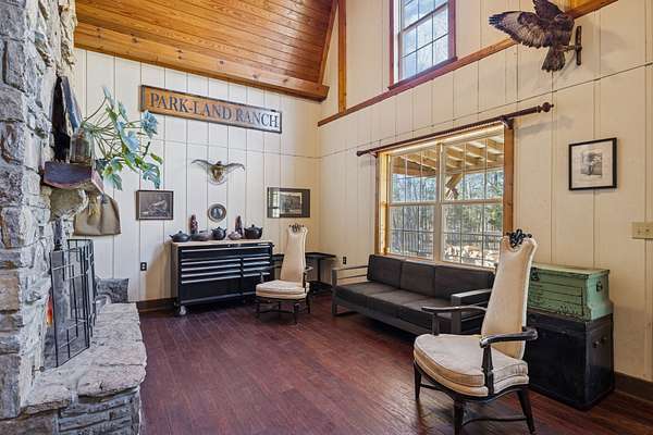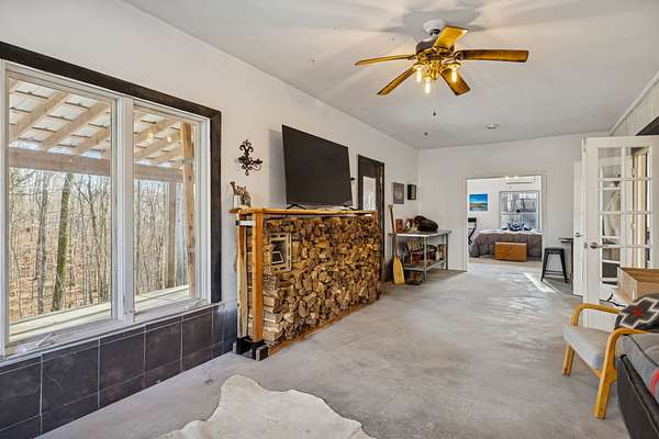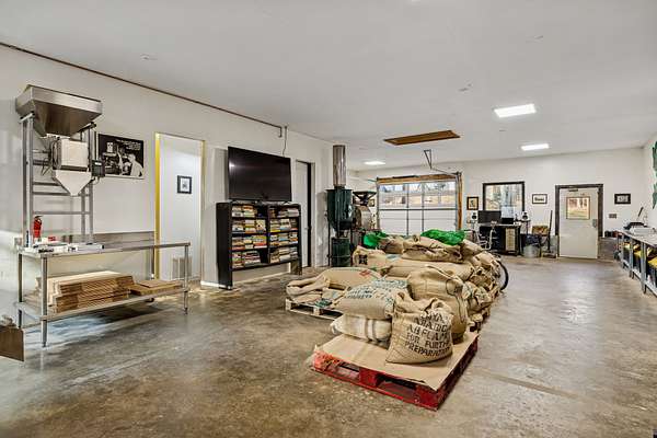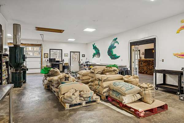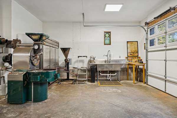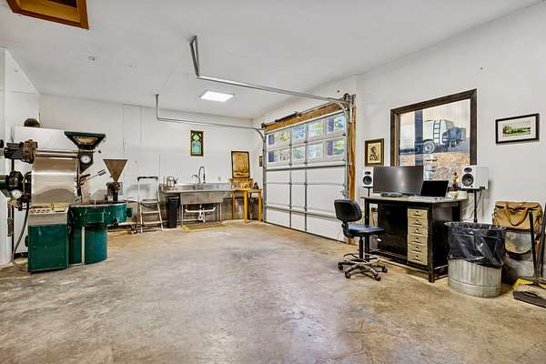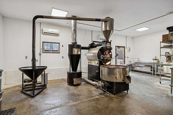 Beyond the residence, the property includes an impressive 2,300 sqft heated and cooled commercial workshop that currently operates as a craft-beverage business. This versatile space is fully equipped with a kitchen, shower room with sink, wood-burning stove and a large covered patio overlooking the wooded acreage, making it ideal for business operations, creative use or future expansion.