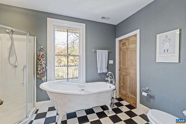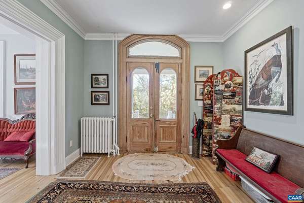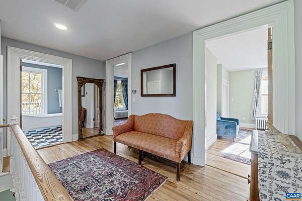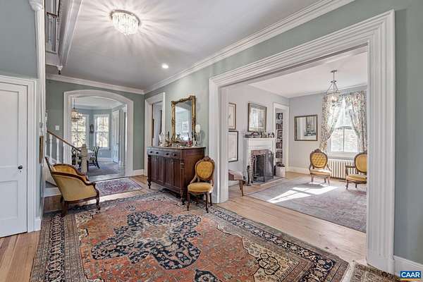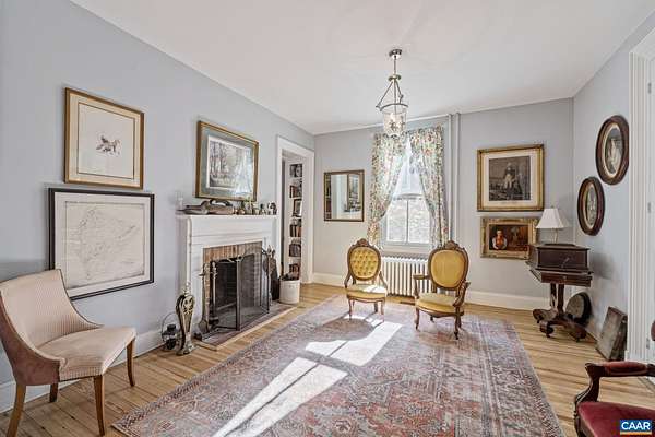 Mulberry Hill ~ c.1900 in Keswick Hunt Country. The main house and guest house are both contributing historic dwellings in the Southwest Mountains Rural Historic District. A fine example of the vernacular Victorian style with a grand hall, 10-foot ceilings, hardwood floors and a central chimney with two fireplaces. A cozy one-bedroom guest cottage is nestled close to the rear of the house. This property has development rights with building sites to support a manor House and stables. The property has mature woodlands of hardwoods and the topography is level with complete privacy. This region of central Piedmont has been described as an abundance of open land that affords expansive vistas of the unspoiled countryside. The two residences qualify for historic renovation tax credits. Wonderful gardening spaces and a bold stream bordering Historic Grace Episcopal Church.