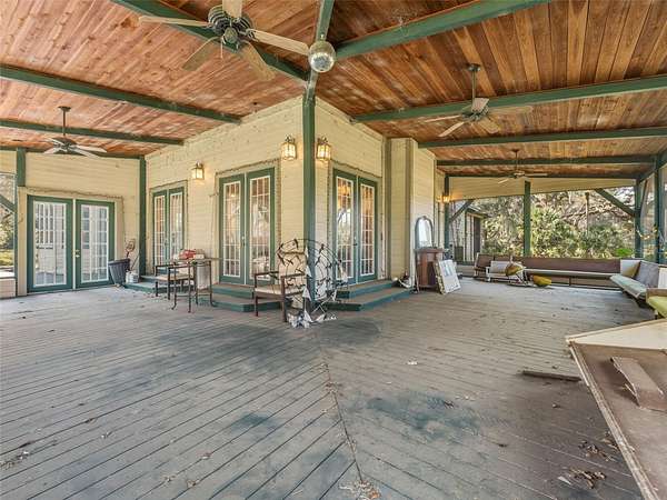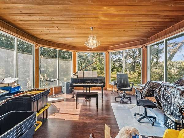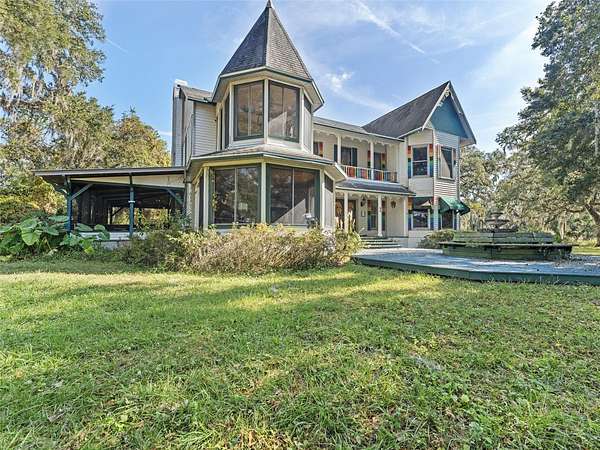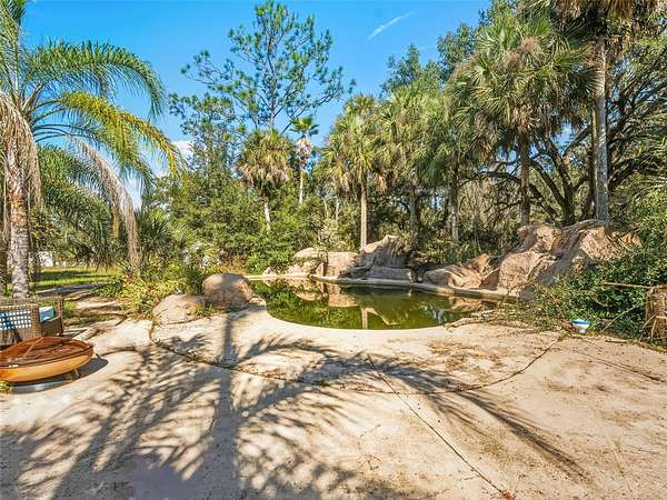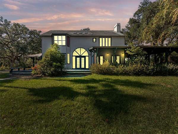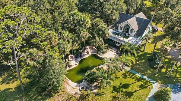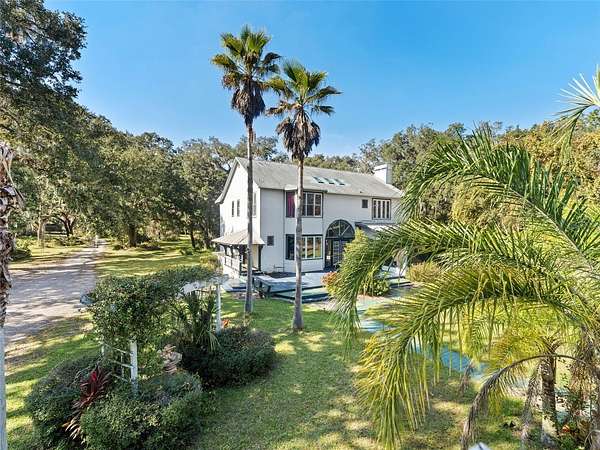 Cash only. Situated on a private 5-acre lot shaded by mature grandfather oak trees, this distinctive estate is located on a quiet semi-private dead-end road and borders more than 10,000 acres of protected nature preserve. Offering exceptional privacy and space, the property presents a rare opportunity for outdoor-focused living just north of Tampa.