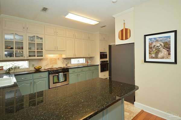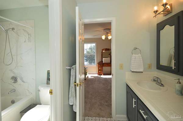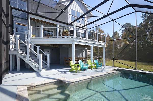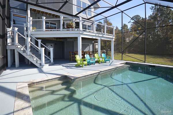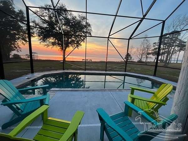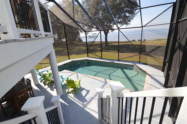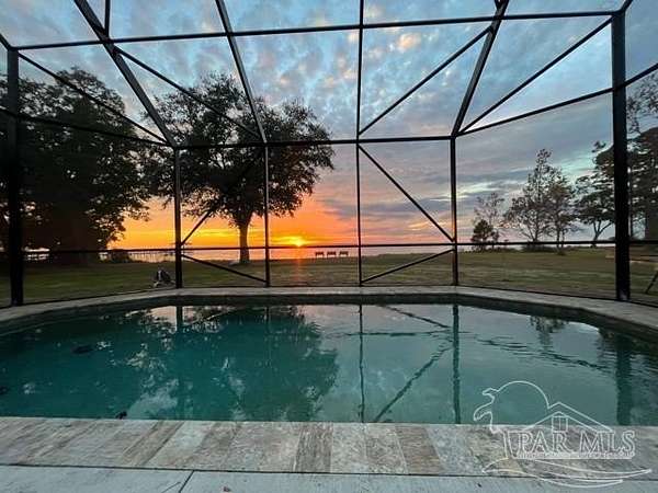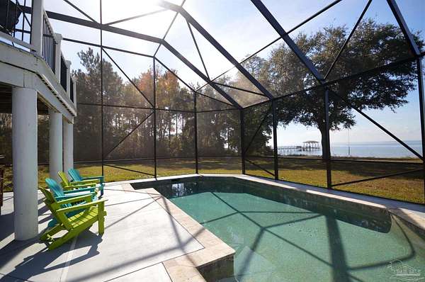 Experience the best of waterfront living with your own piece of paradise overlooking beautiful Escambia Bay in Milton, FL. Conveniently located just 5 minutes from I-10 and only 30 minutes to downtown Pensacola or the area's pristine beaches, this property offers both serenity and accessibility. Situated on 1.84 acres with 195 feet of water frontage, the home is beautifully landscaped and includes a fully stocked pond. Inside, you'll find 4 bedrooms, 4 bathrooms, and 3,218 sq. ft. of thoughtfully designed living space. Hardwood floors, travertine, and expansive windows showcase stunning views from nearly every room. The large kitchen and spacious living areas provide the perfect setting for everyday living or entertaining. A formal dining room and a cozy sitting room-ideal for playing guitar with friends and family-add to the home's charm. For those who work from home, the office offers inspiring water views with a full bath conveniently nearby. Upstairs, the main bedroom features its own private screened-in porch, perfect for enjoying your morning coffee as the sun rises or unwinding with a cocktail at the end of the day. The upper level also includes a mother-in-law suite and two additional bedrooms connected by a Jack-and-Jill bath. Outside, enjoy magnificent sunsets and an enclosed, heated gunite pool for year-round relaxation or entertaining. The property also offers a 2-car garage, generous workspace below, and ample room for your boat or RV. This stunning home is ready to welcome its next owner. Call today to schedule your private tour.