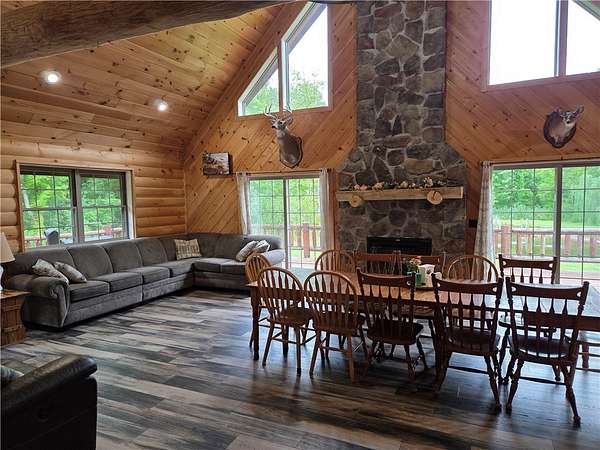 This beautiful three-bedroom, four-bath log home provides plenty of comfortable living space for family and guests. Each bedroom offers privacy and relaxation, while the four bathrooms ensure convenience and ease for daily routines and entertaining alike. Step inside and you'll be greeted by stunning cathedral ceilings that create an airy, open atmosphere throughout the main living areas. The open layout seamlessly connects the living room, dining area, and kitchen, making the home perfect for gatherings and entertaining. Downstairs, the spacious basement offers ample room for recreation, hobbies, or additional storage, giving you plenty of flexible space to enjoy. This stunning home features a spacious, sun-drenched deck and a versatile 3-car garage with an additional area above, perfect for a guest suite, office, or creative studio. The expansive outdoor space on 19 acres provides ample room for gardening, entertaining, animals and enjoying nature. Located just a short drive to the picturesque waterfronts of Lake Ontario and Sodus Bay. Enjoy the peace and privacy of a friendly rural community, with the added benefit of easy access to Rochester and Syracuse-making city shopping, dining, and entertainment conveniently close. Whether you're seeking a year-round residence or a seasonal getaway, 5517 N Norris Rd blends rustic beauty, modern amenities, and an unbeatable location for a truly remarkable living experience.