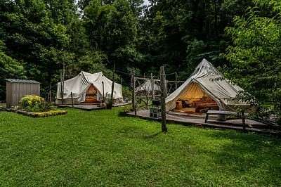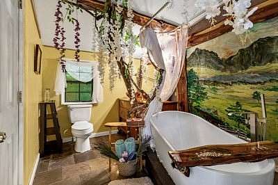 Exceptional Bed & Breakfast Retreat on Hiawassee River - A Unique Opportunity Awaits Welcome to this beautifully maintained fully furnished and well-established 5-bedroom, 6.5-bathroom Bed and Breakfast, offering a truly one-of-a-kind experience for guests and owners alike. Nestled along 280 feet of scenic Hiawassee River frontage, this remarkable property is a rare blend of comfort, character, and modern amenities. Each of the four guest suites is uniquely designed, with distinctive dcor and private, custom bathrooms that create an unforgettable stay. Whether for a romantic getaway or a peaceful retreat, every room offers a special ambiance tailored to delight. The property also includes a spacious 1-bedroom, 1-bath caretaker's apartment, complete with a full kitchen and private entry from both inside and outside the main home--perfect for on-site staff or additional rental income. Outdoor living is equally impressive. Enjoy gatherings on the 600 sq ft party deck overlooking the river, soak in two hot tubs, or unwind around the fire pit under the stars. For added charm and guest appeal, there are three uniquely decorated, climate-controlled yurts, each providing a cozy and memorable glamping experience. Hosting events? You're covered with a large party tent ideal for celebrations, reunions, or small weddings. Sustainability meets convenience with solar panels powering a whole-home Generac backup system, ensuring peace of mind in any season. Two electric-equipped storage buildings offer additional flexibility for business or personal use. Whether you're looking to continue operating this successful B&B or seeking a distinctive private residence with income potential, this property delivers charm, versatility, and riverfront tranquility in one complete package. Schedule your private tour today and discover all that this exceptional riverside retreat has to offer.