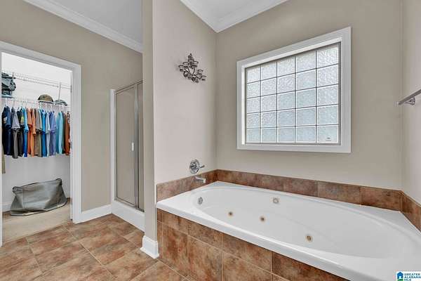 - Bay Window, Garden Tub, Jetted Tub, Linen Closet, Recess Lighting, Separate Shower, Separate Vanities, Split Bedroom, Split Bedrooms, Tub/Shower Combo, Walk-In Closets