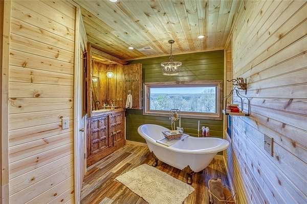 Cabin on 21.8 m/l unrestricted acres! 3 BR, 2 full BA cabin built in 2012 is just what you've been looking for! Coffee tastes better on the covered front porch as the sun rises, and evenings? They belong on 1 of 2 back decks with those big, bold sunset views that never get old! Inside you will find an updated kitchen featuring butcher block tops, gas connection for the stove, and an inviting layout that flows right into the living room that features a gas fireplace and new LVP. But the primary suite… that’s where things get downright irresistible! Think claw-foot soaker tub, a roll-out window that lets the fresh country air in while you relax, an electric fireplace for a little extra ambiance, and a custom-built vanity that’s truly one-of-a-kind. The suite also opens directly to your private upper deck! Outside you will find peach trees, pear trees, a pond, wildlife—deer, turkey, and more—makes this property feel like your own private nature preserve. There’s also a shop building and a brand-new roof in 2025.