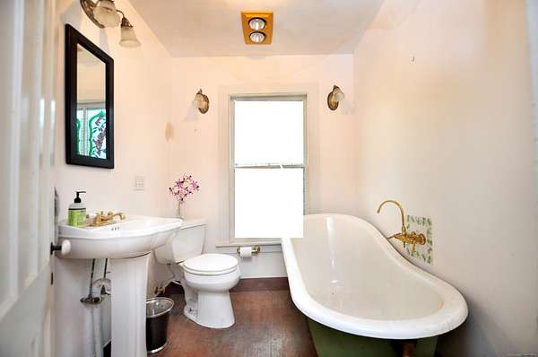 This stately 1800s victorian on 2 acres in the heart of Milton is ready to be restored! Just steps from the Milton Green and bordering the Marshepaug River sits this three story stunning home with mahogany porch with metal roof, antique floors, and a barn! The main floor features antique floors, a beautiful living room overlooking the quiet front walkway, a dining room with built in corner cabinet and access to the front porch as well as a flexible den or office space. The open kitchen has quartz countertop and overlooks the rolling yard. On the second level you'll find a dedicated laundry room, full bath and three spacious bedrooms. The walk up third floor has two semi-finished living spaces, bedroom and roughed in full bathroom. This floor is perfect for dedicated office space, in-law suite, media room or play area. The property also features a two-story barn and one car detached garage, beautiful stone walls and mature trees. This is a one of a kind opportunity to bring back to life a spacious charming home right in the heart of Milton Center. Just minutes from Litchfield center and the rest of beautiful Litchfield County.