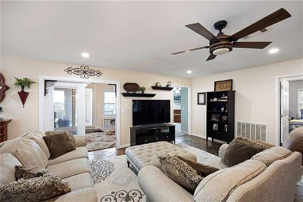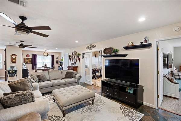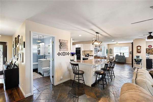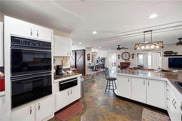 Horse and cattle lovers dream. As you crest the gentle driveway, your greeted with a view of the river valley overlooking your 40 acre pasture with cross-fenced fields and a tranquil pond. As you step inside, the home flows with natural light an open-concept living with warm stone tile floors, and finishes that hint at refined ranch elegance. Four bedrooms provide generous space for large families. The master suite greets with a view and a beautifully remodeled shower and soaking tub perfect for relaxation.