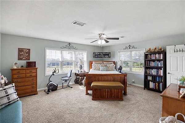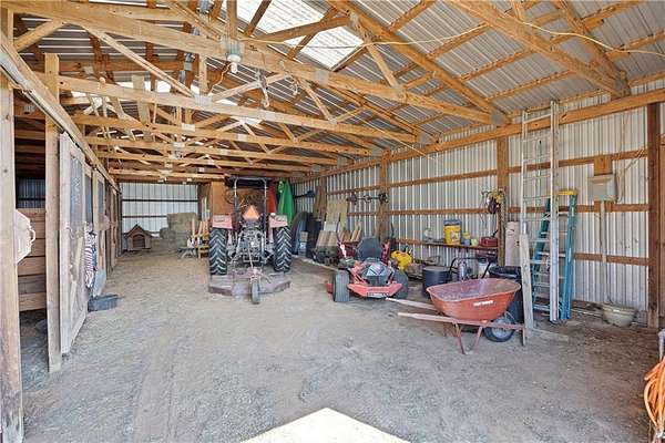 Outside, the above-ground pool anchors the outdoor living scene--ideal for cooling off under the sun or enjoying tranquil evenings by water. Nearby stands a practical barn: large enough for equipment or livestock, with 5 stalls, tack rooms or storage areas, all designed for ease and efficiency.