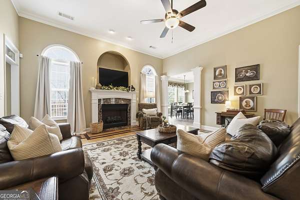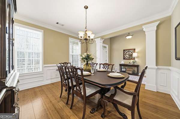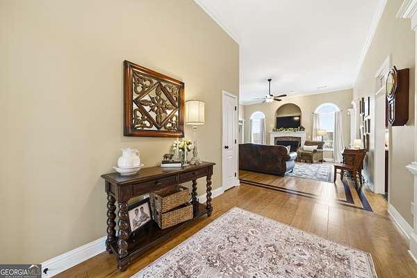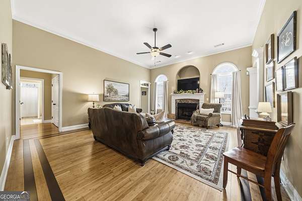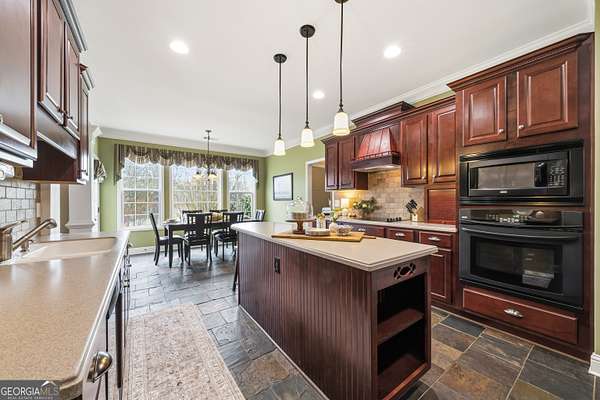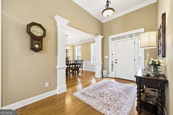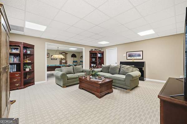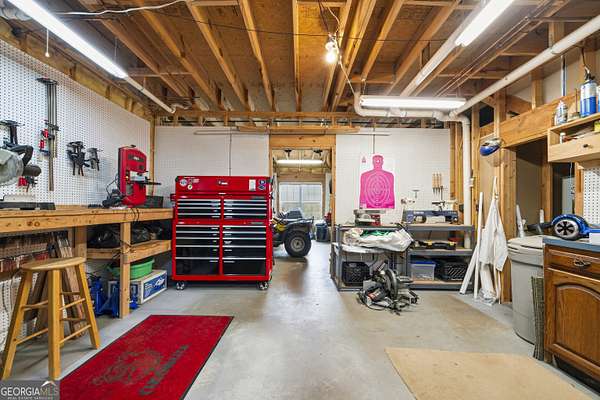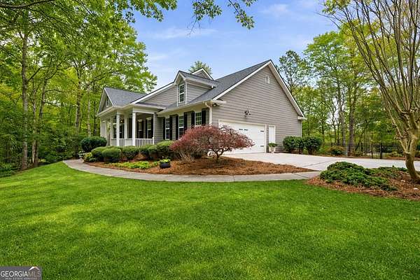 If you've been dreaming of quiet acreage, peaceful views, and a home that feels like a retreat, this 3-acre property delivers it all. From the moment you step inside, you'll notice the soaring ceilings, rich custom hardwood floors, and natural light that create a warm and inviting atmosphere throughout the main living spaces. The family room serves as the heart of the home with a cozy gas fireplace and an easy flow into the formal dining room, making it perfect for both everyday living and entertaining. The kitchen is designed for gathering, featuring a large center island, abundant cabinet and counter space, and a sunny breakfast area overlooking the property. Whether you're hosting family dinners or enjoying quiet mornings with coffee, this space was made to be lived in. The owner's suite on the main level feels like a true retreat with double vanities, a relaxing spa tub, separate shower, and walk-in closet. Three additional bedrooms and two full bathrooms on the main floor provide plenty of space for family or guests. A walk-in laundry room with utility sink adds everyday convenience. Downstairs, the finished basement expands the home even further with a spacious second living area complete with a custom bar, game room, home office, additional guest bedroom, and full bath. There is also an incredible amount of storage including a storm shelter for added safety, a dedicated workshop perfect for hobbies or projects, and additional space for equipment and tools. Step outside and enjoy everything this property has to offer. The brand new Trex deck creates the perfect place to relax, grill, or entertain while overlooking the private backyard. Below, a covered patio area provides additional space for gatherings or peaceful evenings outdoors. The backyard is fenced and ready for pets, play, or gardening, and along the back of the property you'll hear the peaceful sounds of a bubbling creek. The land itself offers even more opportunity, including a natural spring head on the property that could allow a future owner to create a charming spring house, small pond, or even explore installing a private well. Additional updates include fresh interior paint in the dining room and several other areas of the home, giving the space a refreshed and move-in ready feel. The property also includes an attached 2-car garage and a custom covered 2-car carport, offering plenty of room for vehicles, equipment, or toys. Private, peaceful, and full of space to spread out - yet conveniently located just 10 minutes to I-20, 30 minutes to Downtown Atlanta, and 45 minutes to Hartsfield-Jackson Airport. If you've been dreaming of quiet acreage, a spacious home, and room to truly live, this one is worth seeing.