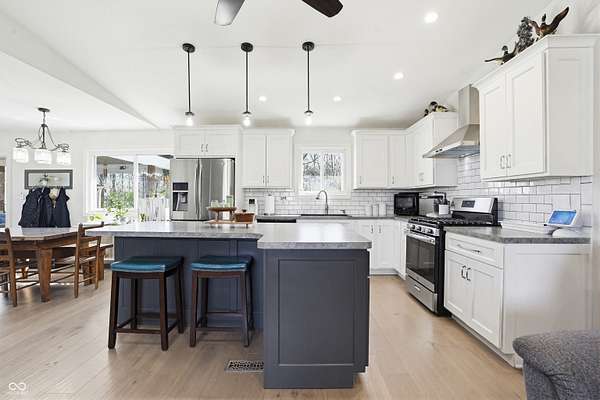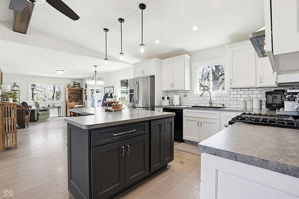 - Ceiling Vaulted, Kitchen Island