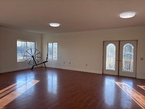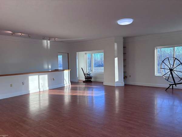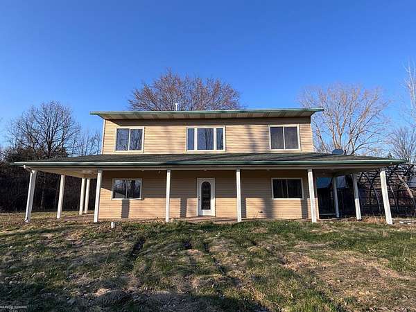 Est $2,008/modon't miss this modern farmhouse built in 2003. Unique configuration of a colonial features two bedrooms, bath, laundry and a garage area on the first floor. Second floor has two bedrooms, bath, kitchen, and huge great room that opens to a upper level deck surrounding two side of the home. Hot water radiant heat in the floors - heating system replaced in 2026. Stamped patio surrounds all four sides of the home. 24x24 metal pole barn with sliding doors on two sides. Two sheds with metal roofs. Greenhouse. Pond. Contents of barn and sheds to stay with home. Freshly painted throughout.