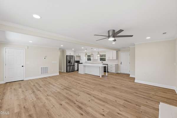 - Bathtub/Shower Combination, Ceiling Fan(s), Crown Molding, Double Vanity, Eat-In Kitchen, Kitchen Island, Kitchen/Dining Room Combination, Living/Dining Room Combination, Open Floorplan, Pantry, Quartz Counters, Recessed Lighting, Shower Only, Smooth Ceilings, Walk-In Shower