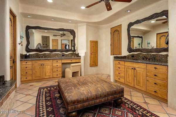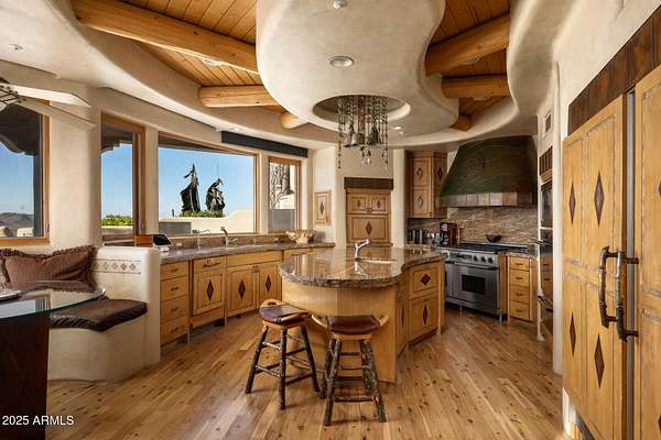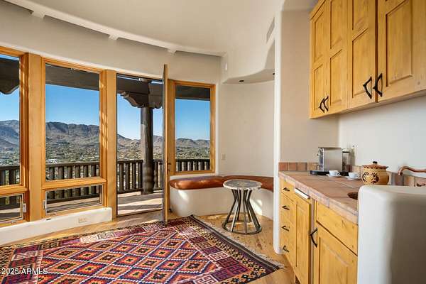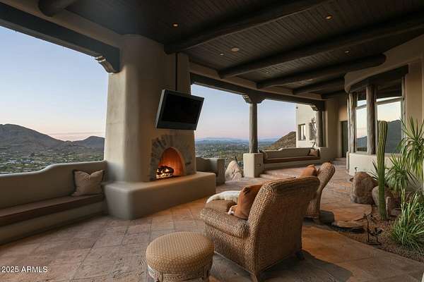 FULLY FURNISHED and MOVE-IN READY, this Paradise Valley estate is more than a home -- it is a living canvas, perched gracefully atop one of the highest elevations of Mummy Mountain. From this vantage point, the mountains and valley below becomes your gallery: an ever-changing panorama of the Phoenix skyline, rugged mountains, and incredible Arizona sunsets. Behind the private gates of Las Brisas, just north of Paradise Valley Country Club, stands a residence conceived by visionary architect Lee Hutchinson and brought to life by master builder Shiloh. Every inch of its nearly 7,500 square feet tells a story of artistry and passion. Handmade carved doors, hand-plastered walls, and custom chandeliers and sconces by Ulla Darni glow like sculptures of light. Decorative copper and leather accents enrich the custom cabinetry, while the soft chime of Soleri bells greets you in the entry and kitchen subtle symphonies of design and detail. Floor-to-ceiling glass opens the home to over 2,000 square feet of outdoor living space, where architecture and nature blend seamlessly. Here, an outdoor kitchen, a grand fireplace, and an infinity pool with spa cascade toward the horizon, creating a setting as dramatic as it is serene. The landscaped grounds, themselves featured in publications, envelop the estate like brushstrokes in a master painting, completing its sanctuary-like aura. Highlights of the Work -5 ensuite bedrooms, each framing views as if from its own gallery wall. -7 bathrooms each a composition of elegance. -8 fireplaces, flickering like curated works of light and warmth -2 separate guest wings with ensuite bedrooms, offering privacy and grace. -A gourmet chef's kitchen double dishwashers, double sinks, side-by-side Sub-Zero refrigerator and freezer, beverage drawers, three ovens, two microwaves, and warming drawers all designed for culinary artistry. -A temperature-controlled 1,000 bottle wine room, perfect for collecting vintages as timeless as the home itself. -Butler's pantry and walk-in pantry for seamless hosting. -Primary suite with dual closets, a retreat within a retreat. -Electronic window shades in key living areas. -Freshwater and saltwater aquariums, living art that brings motion and color into the home. -2 new AC units. -Exterior of home was painted in 2025. Whether for grand soirees or the quietude of private retreat, this estate is a symphony of innovation, craftsmanship, and natural beauty a one-of-a-kind masterpiece that elevates living into art itself. This is more than a residence. It is a lifestyle painted in light, detail, and imagination a rare chance to own a true work of architectural art in Paradise Valley.