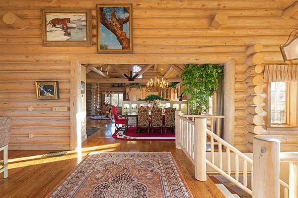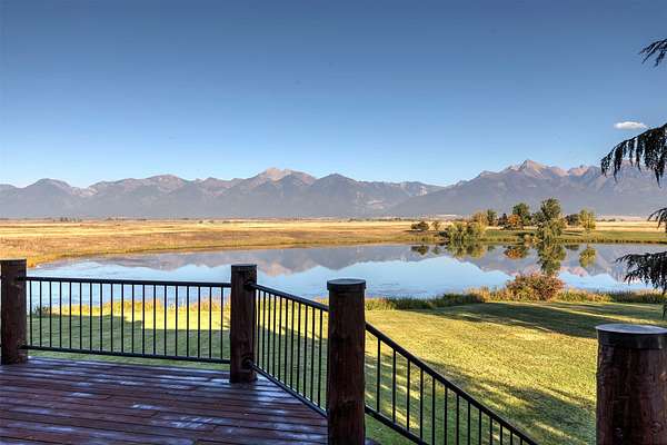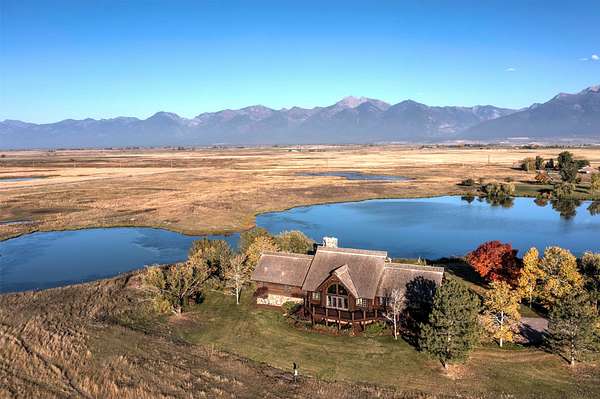 Located near the small community of Charlo, this sprawling 160-acre property offers relaxed living, privacy, stunning views of the Mission Mountains, and so much more. With a spacious main house, caretaker's cottage, trophy house, and a well-appointed shop, this estate provides comfort and luxury in the heart of the gorgeous Flathead Valley. The main residence, a magnificent log home with a rock-clad exterior, spans an impressive 6,646 Sq. Ft. and offers 3 bedrooms and 3 bathrooms. Inside, large windows illuminate the living spaces, showcasing exposed whitewashed log beams and intricate woodworking throughout. The main floor seamlessly connects the kitchen, dining area, and living room, where a massive floor-to-ceiling stone fireplace and a rock-clad wet bar with a wine refrigerator create a warm and inviting atmosphere, ideal for entertaining. The kitchen is perfect for cooking enthusiasts, with a large island, dual ovens, and a Sub Zero refrigerator. The main level also houses a spacious primary suite with a floor-to-ceiling stone fireplace, dual walk-in closets, and an attached bath with a custom-tiled jacuzzi tub and dual vanities.Step outside to a huge wrap-around deck that overlooks the ponds and offers gorgeous views of the Mission Mountains. The walkout lower level features 2 additional bedrooms, another living room with a stone fireplace, a fitness room, and a temperature-controlled wine cellar. The caretaker's home, spanning 2,303 sq. ft., features 4 bedrooms and 1 bath, providing a comfortable living space for on-site management or guests. Additionally, a 2,800 sq. ft. trophy house with a kitchenette and a 1/2 bath adds to the property's appeal. Completing the estate is a well-equipped shop, which features RV hookups, with a 3/4 bath, offering functionality and convenience. With plenty of space in an ideal setting, this thoughtfully crafted estate on prime Flathead Valley property, offers the perfect blend of Montana luxury and natural beauty you've been looking for.
