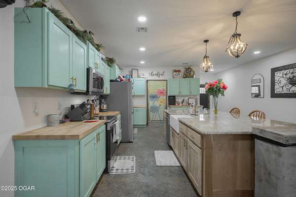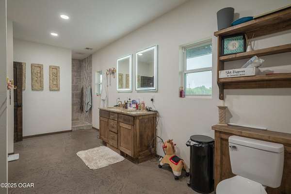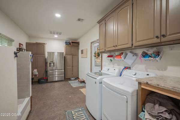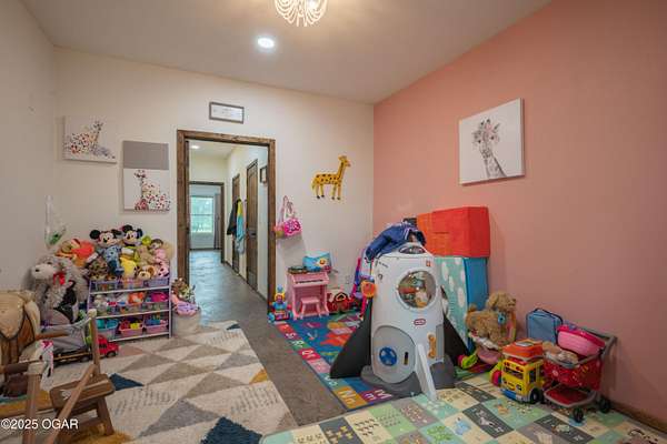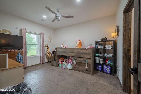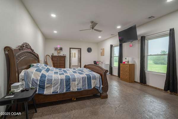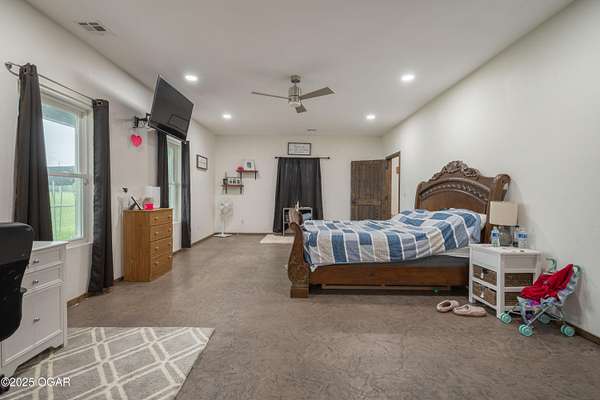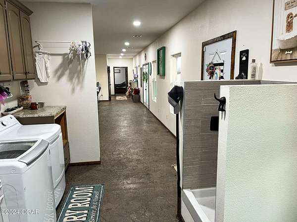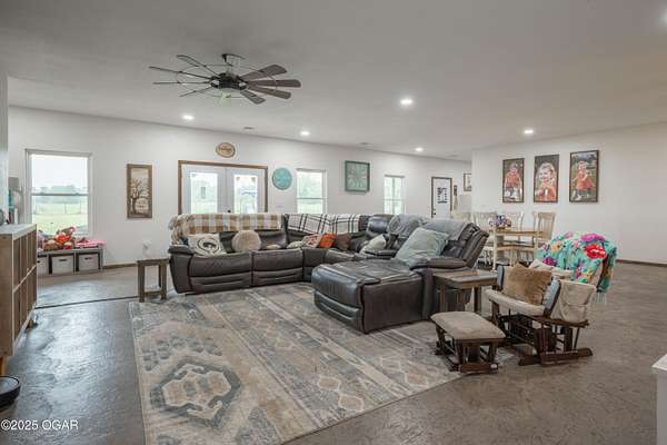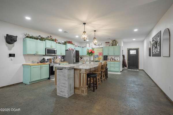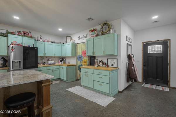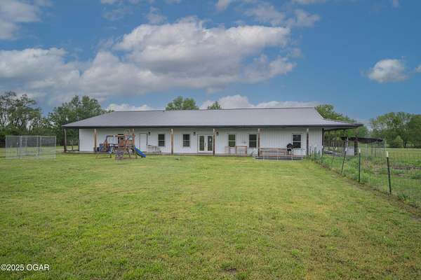 Built in 2022, this ranch-style slab home blends modern craftsmanship with country living. Offering four bedrooms and three bathrooms, the open-concept design invites connection and comfort, creating the perfect backdrop for your gatherings. Nestled on nearly three acres along a paved road, and just minutes from town or bigger cities, you'll enjoy the serenity of wide-open space without sacrificing convenience. Step inside and feel the difference: soaring 9-foot ceilings, energy-efficient spray foam insulation, and beautifully crafted, custom-stamped concrete floors set the tone. Premium solid wood cabinetry and gleaming granite countertops run throughout the home, adding warmth and timeless elegance. At the heart of it all, the gourmet kitchen shines with a generous center island and an expansive wall-to-wall pantry, ready to host everything from holiday feasts to simple Sunday mornings. The primary suite is a private sanctuary, complete with dual closets and a spa-inspired tile walk-in shower designed for relaxation at the end of the day. Thoughtful touches continue with a spacious laundry room featuring its own dog shower, a dual-fuel central heating and air system for year-round comfort, and a three-car attached garage that provides both convenience and storage. Outside, the possibilities unfold. The fenced yard offers room to roam, garden, or play, while the wraparound porch becomes your front-row seat to breathtaking sunrises and golden sunsets stretching across the horizon. Recent updates include a 6-inch gutter system and a grated/graveled driveway. As an added benefit, this home is enrolled in the NRP program, offering the potential for valuable tax savings through 2027 for qualified buyers who continue participation. Contact a Realtor for full details and eligibility requirements.