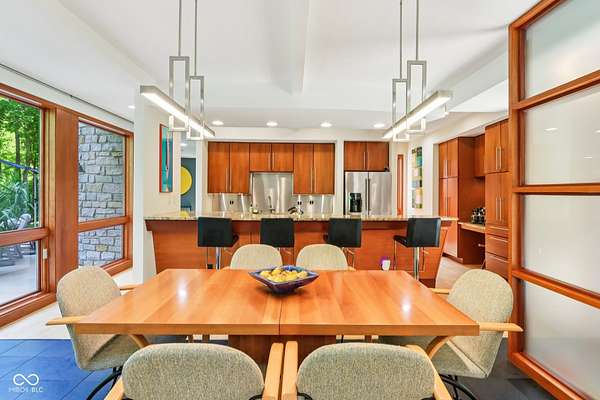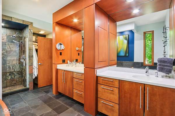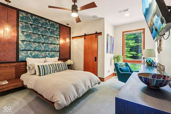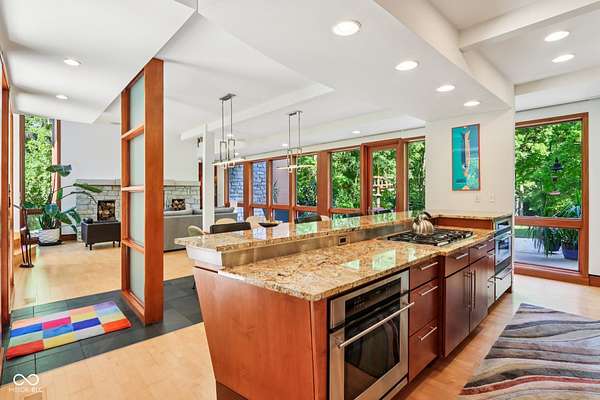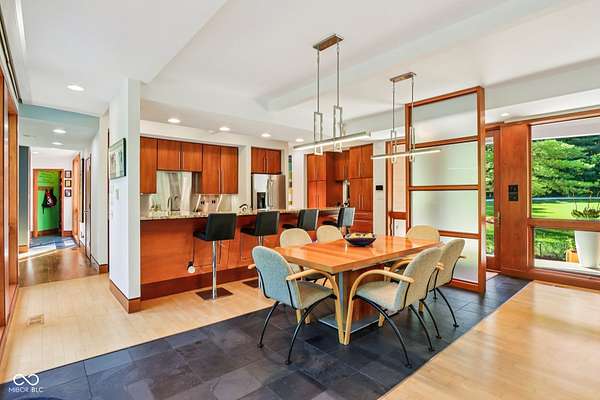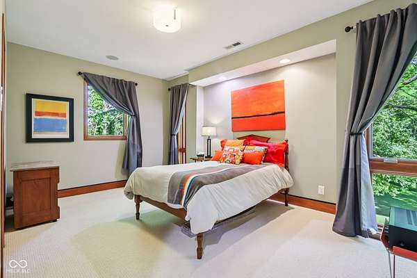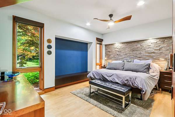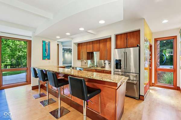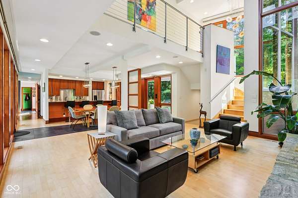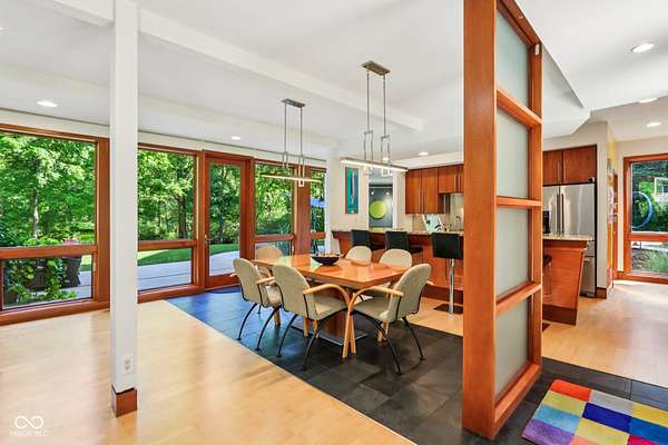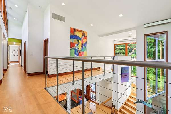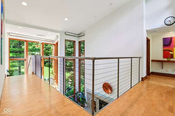 UPDATE! Seller is now selling 5512 US State Road 144, Woodmere Estate Minor Lot 1 with listing 22049514. 5512 is a two bedroom one bath home that sits on 2 acres in front of 5528 to be included with the sale price. WOW! Architect John Lindstaedt served clients as lead designer on large commercial facilities in the Midwest and East Coast. His excellence is highlighted in this Frank Lloyd Wright inspired custom commercial "Pavilion Concept" design built on a secluded 3.23 acres and .4 miles of trails-(3 trail bridges, benches and bike obstacles), giving transparency to the inside and outside from each pavilion. Heated floors throughout the home (and garage) give warmth while enjoying the trimless drywall finish with a reveal detail with Architectural F Reveal Bead, Pella windows with custom shades- (master, upstairs bedroom, upstairs guest bedroom, upstairs breezeway, staircase and main floor), solidcore commercial interior doors, all while listening to the sound system that includes the back porch and garage. The highest level of craftsmanship represented throughout encompassing the Primary bedroom on the main featuring California closets- (master, laundry room, upstairs guest room and coat closet), custom garage storage system, french drains-no gutters, 2x6 exterior walls, Generac whole house generator, professional home theatre, home intercom system, home security system, surveillance system and driveway alarm. This is the ultimate dream home!