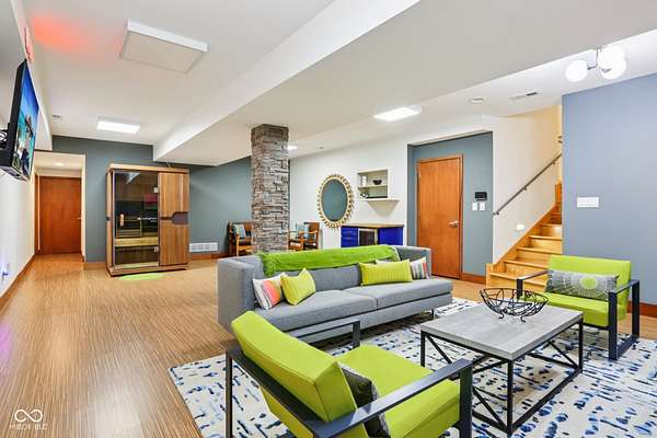 - Basement, Bathroom x 5, Bedroom x 4, Bonus Room, Exercise Room, Kitchen, Laundry, Living Room, Loft, Office, Sauna
