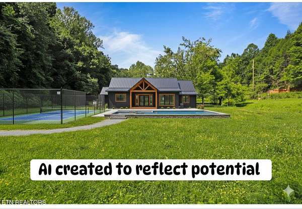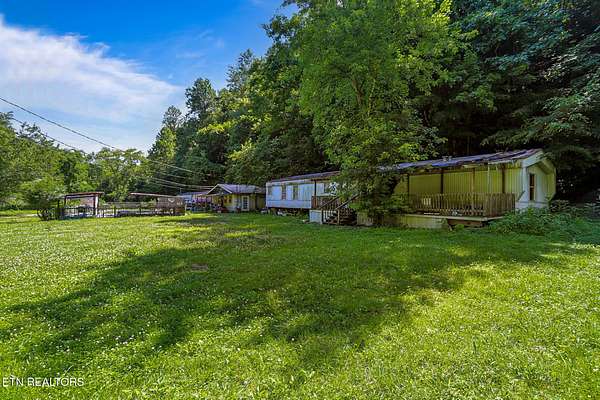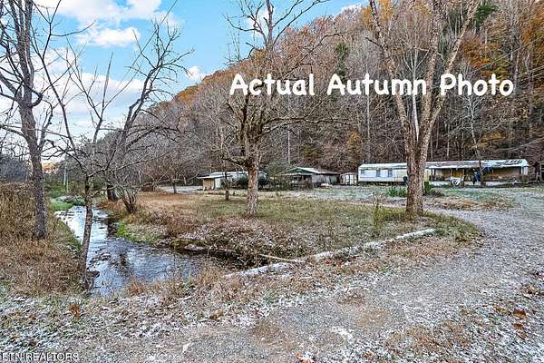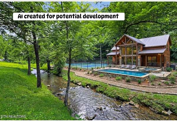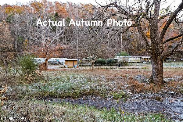 This property was used as a campsite years ago. Potential for investment opportunities to build a large lodge , overnight rental investment potential, or build your own private retreat. Location is only a couple miles from the Pigeon Forge HUB , and yet you feel like you are away from commercial activity with ;your own piece of quiet and serene countryside of the Smoky Mtns in East Tennessee. Property is sold as is and mobile homes all convey at no value to selling price. There is a septic system for a 4-bedroom home, a swimming pool that does hold water but needs TLC(not used in years), a lovely creek meanders the front of property.. Note some photos are AI Created to offer visual aid for potential development. Also, rare to have both summer and autumn photos of properties for sale to reflect what seasonal views look like.