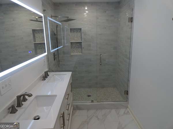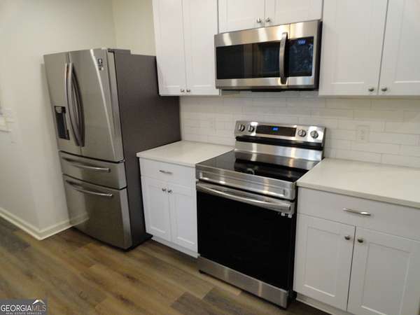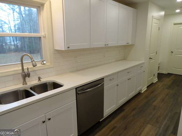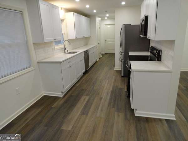 Welcome home to this all brick ranch on nearly two acres in North Fayette. This home was stripped down to the studs and rebuilt in 2022. Almost everything is less three years old (roof, gutters, complete HVAC system including new duct work, cabinets, appliances, sink, plumbing fixtures, drywall, LVP flooring, carpet in bedroom, tile baths & backsplash, water heater, insulation, interior doors, etc... Convenient to Fayetteville shopping, Trilith, Airport, and downtown Fayetteville. Large primary bedroom with double barn doors on closets. Double vanity, huge tiled shower. Separate laundry/utility room with door to private backyard. Some trees have been removed to open up back yard. Mud room area with hooks and seating. Panty/coat closet. Large outside storage building, an unused well house that can be used for storage. House is connected to county water. Large wood deck on back of house.