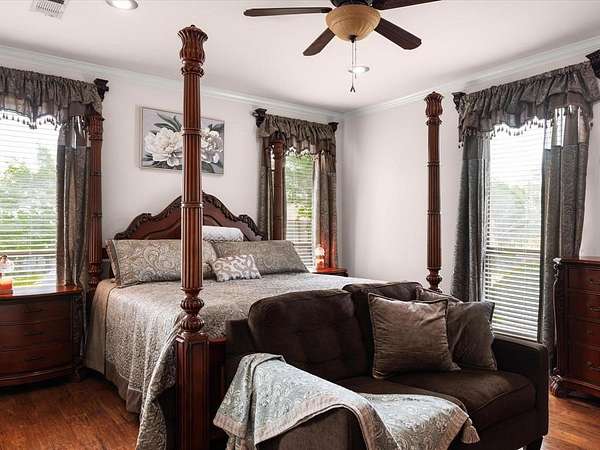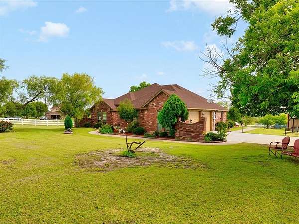 Welcome home to country living at its best on this beautiful 10+ acre property gated and perfect to relax and watch the sunset after a long day. The property features 5 spacious bedrooms, 2 bath and a thoughtfully designed living space. As you step inside, you'll be welcomed by a bright and inviting living area with windows thought that bring lots of natural light. A bonus is the huge workshop with two rooms and a bathroom and a pond great for animals. The spacious living room features a cozy wood burning fireplace to warm up to in the winter, windows allowing the natural light to fill the space and tile floors throughout. Open Concept kitchen and living room gives room for easy entertaining. The Primary Suite includes double vanities, garden tub, a spacious walk-in closet, and a large walk-in shower. The house. The garage provides plenty of parking for that car enthusiast, tools, or recreational gear and a half bath that makes the garage functional for several options. Step outside to your very own oasis delightful for entertaining guest or just peaceful living. NO HOA, you'll have the freedom to truly make this home your own. Don't miss out refined Texas living at this private 10+ acre estate!