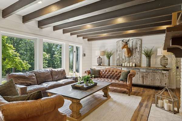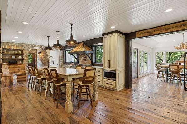 Welcome to 5530 Pinewood Rd, a private oasis in the heart of Leiper’s Fork offering 3 bedrooms, 3 full baths, 1 half bath, and 4,954 sq ft on 5.07 acres. This beautifully renovated farmhouse-style ranch blends timeless character with modern comfort. Features include hardwood floors, exposed beams, and multiple wood-burning fireplaces. The spacious kitchen offers bar seating for eight and opens to a large dining room with fireplace, ideal for entertaining. Expansive living area with custom half bath. Two bedrooms with Two baths on the main level.
