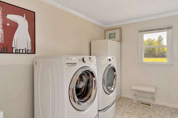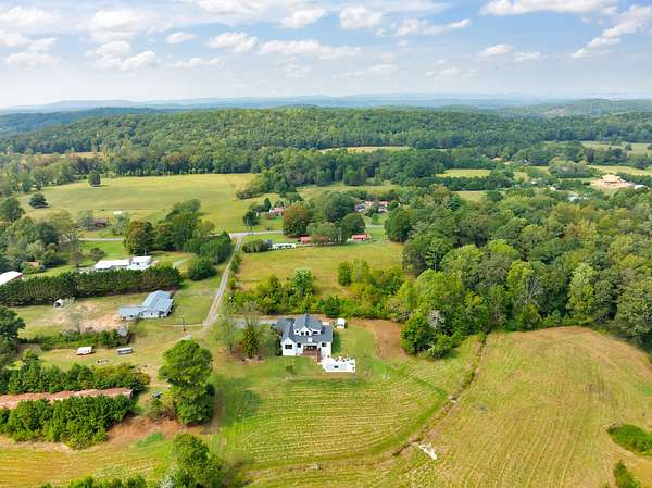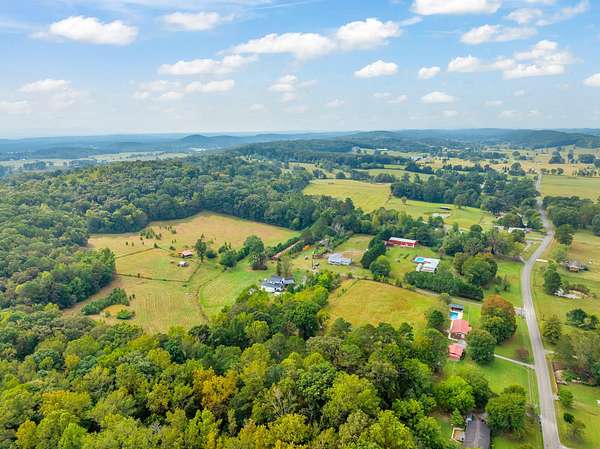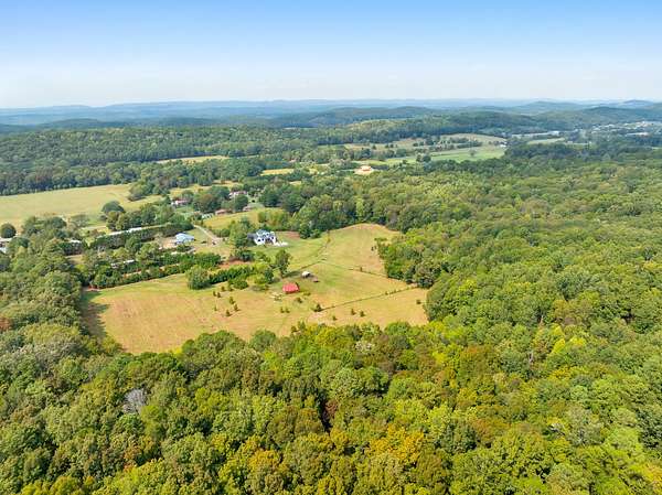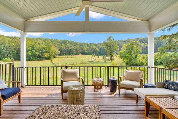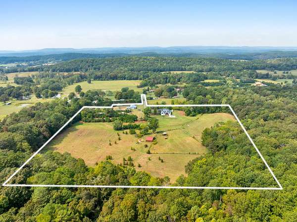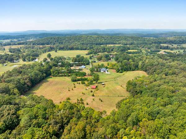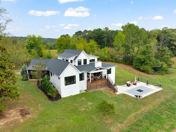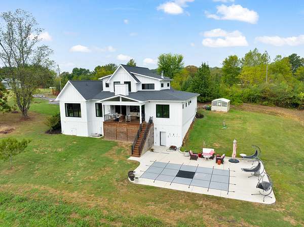 Experience refined country living on this rare 28.62-acre estate, featuring two beautifully crafted homes, a saltwater pool, greenhouse, barns, and abundant outdoor amenities. The 2,915 sq. ft. main residence offers 3 beds, 3.5 baths, vaulted ceilings, wide-plank hardwood floors, and a grand great room with 20-ft ceilings and a stone fireplace. The gourmet kitchen and spacious covered Trex deck overlook sweeping views and a 10x20 saltwater pool. The luxurious primary suite features 10-ft ceilings, blackout curtains, spa-like bath, and custom walk-in closet. Upstairs, a charming loft with built-in queen beds and private bath creates a perfect guest or family retreat. Built to withstand Category 3 tornadoes, the home includes an insulated garage with mini-split HVAC and a large unfinished basement. Included is a 2,152 sq. ft. second home -ideal for guests, multigenerational living, or rental income. The land offers two ponds, a creek, open pasture, mature trees, a mini orchard, raised garden beds, and a fully outfitted greenhouse. Outbuildings include a 500-ft chicken barn, metal pole barn, and two Steelmaster Quonset huts. This one-of-a-kind property blends privacy, luxury, and self-sufficiency-ready for your next chapter.