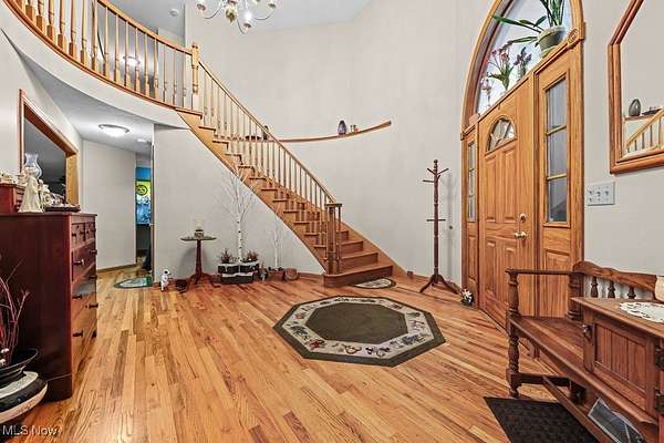 Welcome home to this one of a kind property! A picturesque private retreat nestled in the heart of Valley City. Step into this beautiful residence that has been freshly painted and be greeted by a spacious, light-filled entrance foyer with a circular staircase. The open floor plan seamlessly connects living, dining, and kitchen spaces. The kitchen features a large walk-in pantry and kitchen island for extra working space. High ceilings and large windows frame tranquil views of the lush, landscaped grounds, while gleaming hardwood floors add warmth and sophistication throughout. The spacious family room is anchored by a stone fireplace, creating a cozy atmosphere during Ohio's chilly winters. Sliding glass doors lead to a generous deck-perfect for summer barbecues, outdoor dining, or simply relaxing as you take in the beauty of your surroundings. Formal dining room offer ample space for celebrations and gatherings. The finished basement provides even more living space, full bathroom, a large recreation area and a wood burner stove. There's abundant storage and the flexibility to tailor the space to your needs. Step outside to your own private oasis, park-like setting with walking paths, bridges and 1/4 acre pond. The property is landscaped with mature trees offering shade and privacy. The expansive deck and patio area are perfect for alfresco dining and outdoor gatherings. A well-kept lawn provides space for play, gardening, or simply enjoying the peaceful ambiance of Valley City. Enjoy the peaceful privacy while being so close to major highways and amenities. Winter Brook Dr is situated in a safe, friendly, sought-after neighborhood known for its welcoming spirit and well-kept homes. Easy access to top-rated schools, shopping, dining, and recreational facilities. Valley City is celebrated for its small-town charm, beautiful parks, and convenient proximity to major highways, making commutes to Cleveland or Akron effortless. See Supplements for ADDitional INFOrmation.