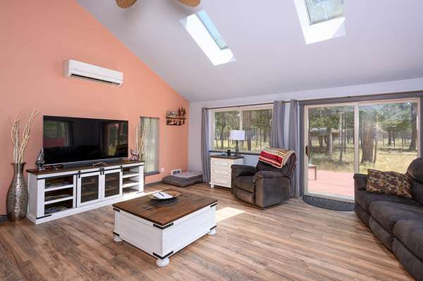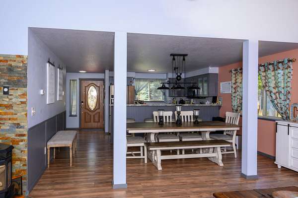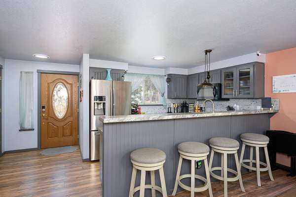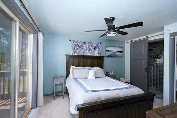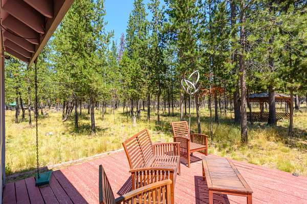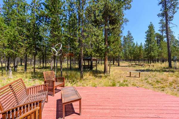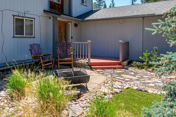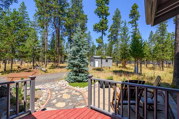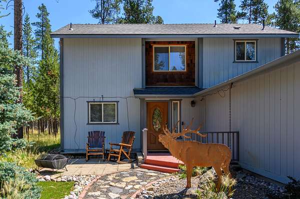 Welcome to your private retreat on 2 beautiful acres just minutes from Mt. Bachelor and Sunriver Resort. Vaulted ceilings and generous windows fill the main living area with warmth and natural light, creating an inviting space to relax or entertain. The kitchen features stainless steel appliances and a spacious breakfast bar perfect for gathering. Upstairs, the primary suite offers a peaceful escape with heated floors, tiled shower, glass block accents, and charming barn door entry. A bonus room with closet provides flexibility for a potential 3rd bedroom. The main level includes a second bedroom ideal for guests or office use. Enjoy the oversized 2-car garage with ample storage, large back deck for wildlife viewing, and a 12x16 or 24x38 shop with RV storage for all your gear. Ideal as a full-time home or income opportunity.