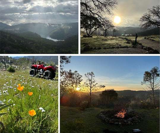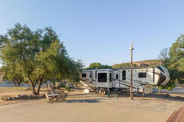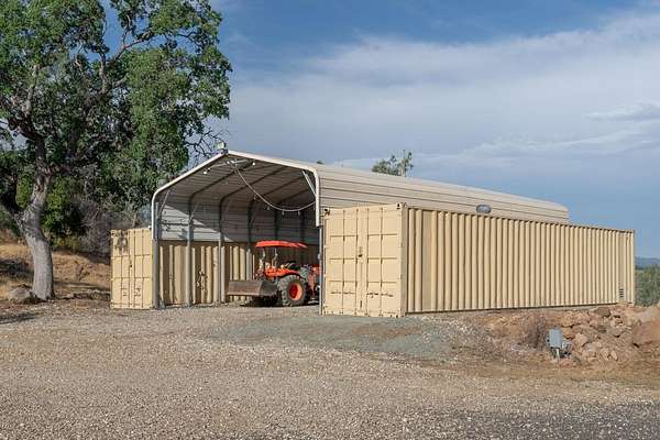 Looking for the perfect getaway property for a sanctuary, retreat or personal adventure lodge? This 132 acre property known as Sunset Ranch has the most beautiful views of New Melones reservoir and the surrounding mountains with a lookout deck for enjoying the sunsets that will take your breath away. The heart of this property is zoned with a rare Recreational Zoning and over 4 miles of trails for hiking and exploring on foot or on the 3 included compound ATV's. Enjoy more access to bordering 600+ acres of BLM land. This property includes a charming small cottage with a full bathroom and a premium luxury 2020 Keystone 42 foot trailer just a few yards away that will easily sleep 6 people and includes all the furnishings. Additionally the property includes a basketball hoop, picnic tables, disc golf, a large level pad for multiple uses and recreation, a Kubota tractor and two 40 foot Connex containers with electrical installed, used as office/storage or gaming and one used as a tool shed. There is one large carport for additional RV or boat storage as well. Discover all the native flora and fauna or hone in your birdwatching skills by identifying well over 40 aviary species that migrate through the property every year. This property would make an exceptional family fun oasis for making memories around a campfire or as a cattle ranch for grazing. Let your imagination soar with the possibilities. Permitted zoning uses can be provided. This property has power, well and septic and will be sold furnished and turnkey ready for the next special buyer. Be sure and check out the Video!