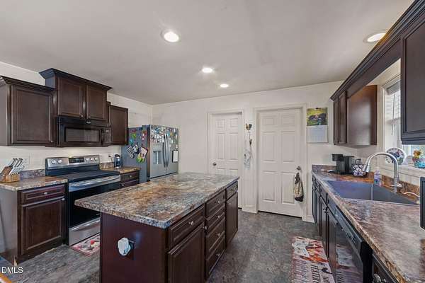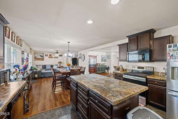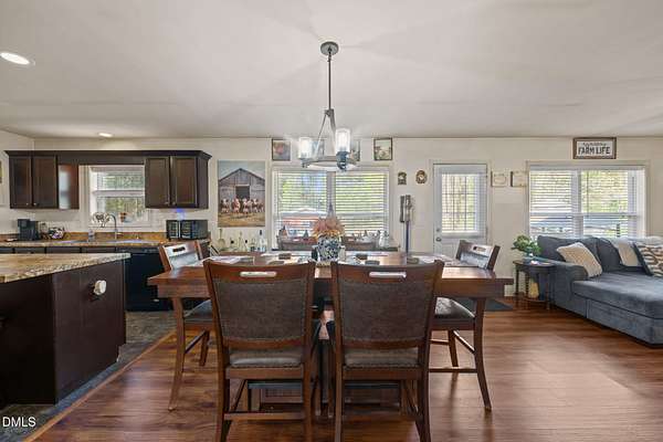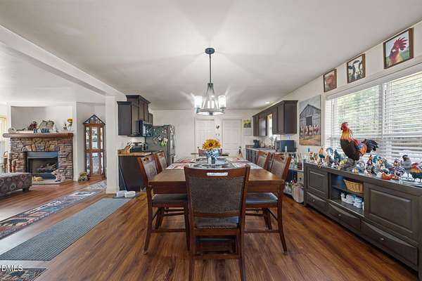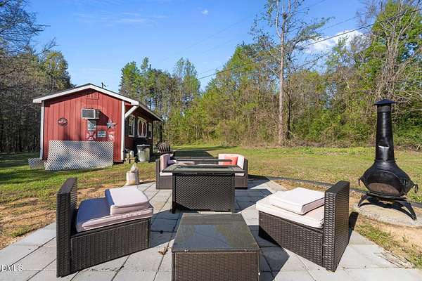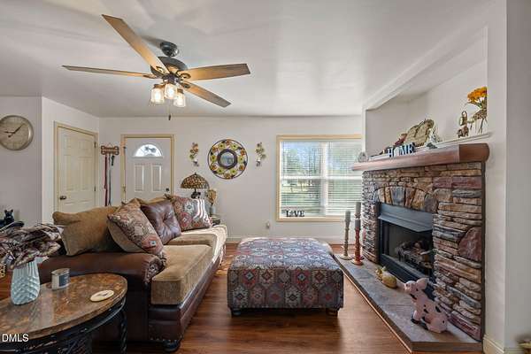Escape the noise and step into your own private retreat in Mebane. Situated on 11.1 peaceful acres, this one level home offers the space, flexibility, and freedom that country living is all about. Inside, you'll find an open floor plan with double living areas, perfect for gathering or creating dedicated spaces for work, hobbies, or relaxation. A cozy fireplace anchors the main living space, while the kitchen features a large island, stainless steel appliances, and a pantry for everyday convenience. The spacious primary suite offers a true escape with double walk in closets, dual vanities, a walk in shower, and a soaking tub. Three additional bedrooms provide room for guests, family, or creative spaces. Step outside to a rocking chair front porch and covered back deck overlooking your land, ideal for homesteading, gardening, recreational vehicles or enjoying the outdoors. Multiple storage buildings, a two car carport, and a versatile outbuilding with kitchenette offer endless possibilities for woodworking, entertaining, or future use. Property is serviced by a shared well with an agreement and a 3 bedroom septic system.