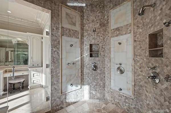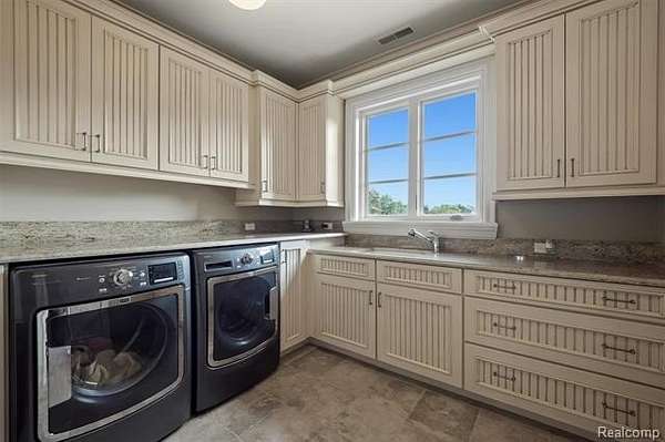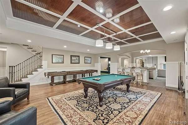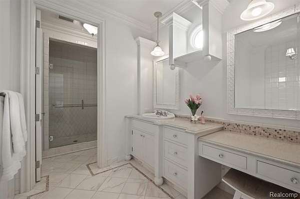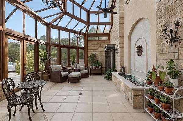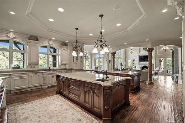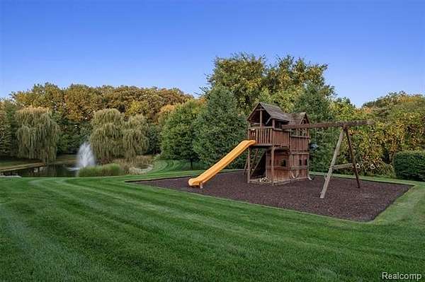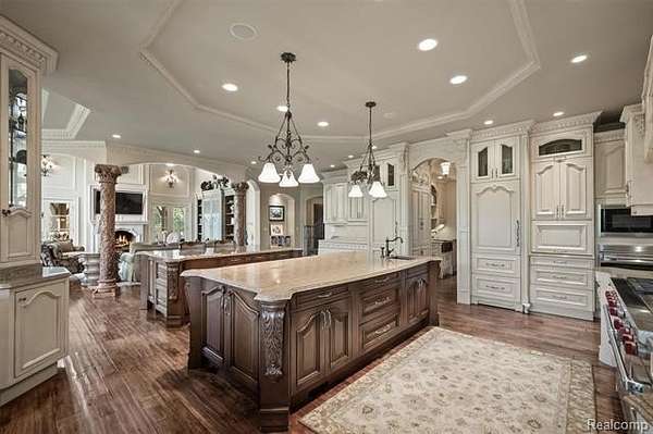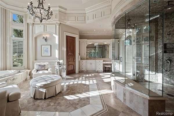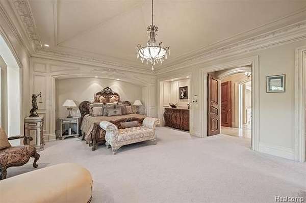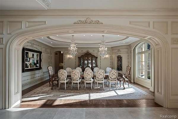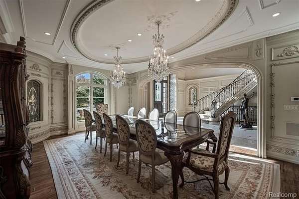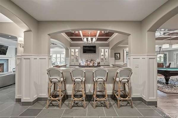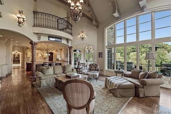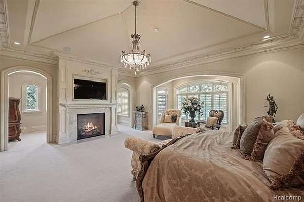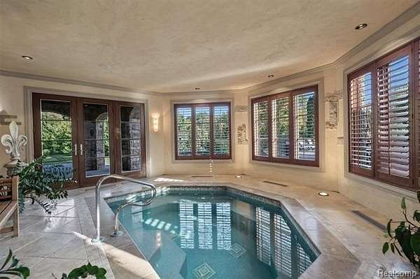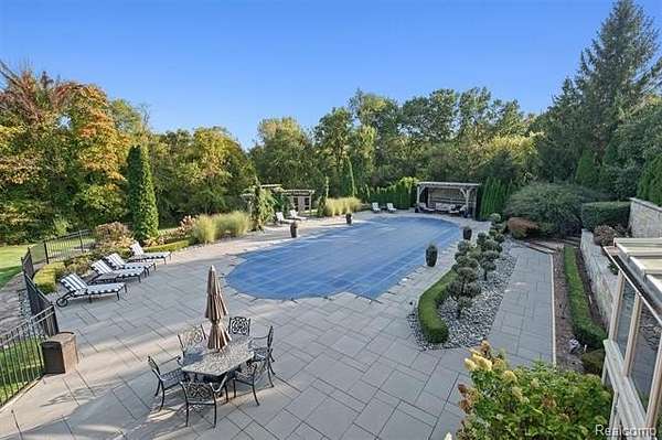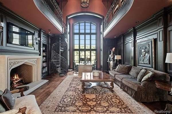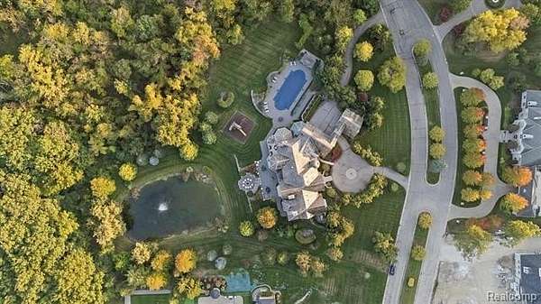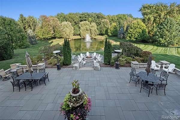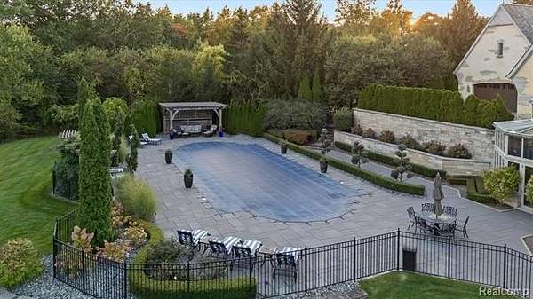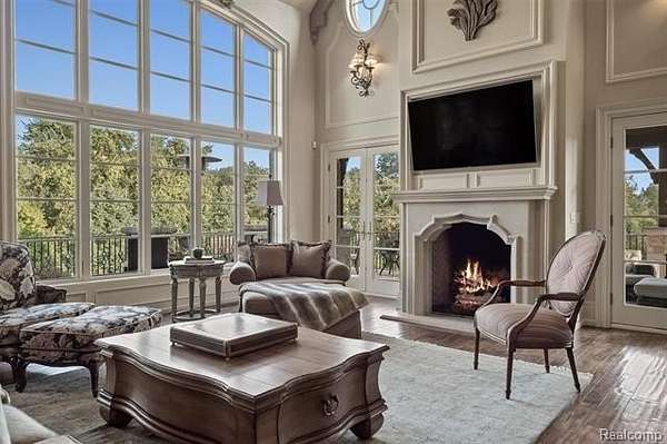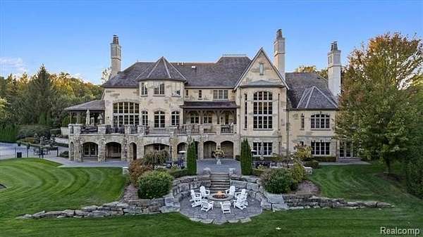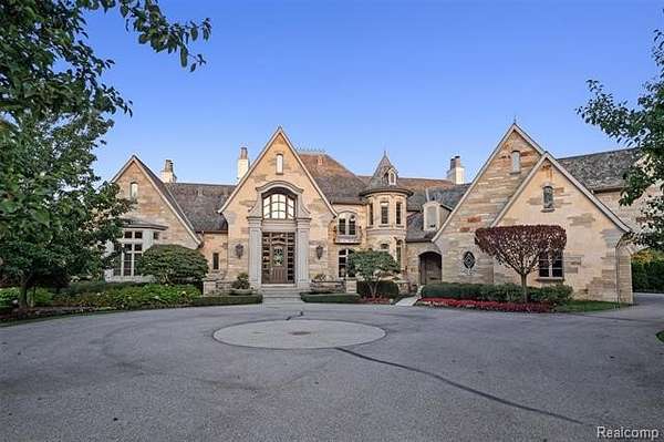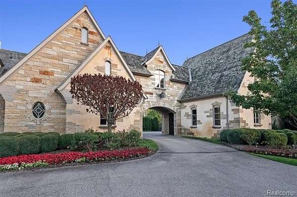 Live the lifestyle of a private retreat in this extraordinary French Normandy estate set on nearly four acres within one of Oakland County's most exclusive gated enclaves. Spanning about fourteen thousand sqft, this residence blends timeless European craftsmanship w/ modern sophistication. A grand barrel-ceiling foyer w/ sweeping wrought-iron staircase reveals exquisite details--from custom millwork & ironwork to rich wood, stone, & onyx finishes. The two-story library w/ limestone fireplace & spiral staircase is a showcase of artistry and design. The chef's kitchen by Bella Cucina with Downsview cabinetry offers dual islands, hammered copper sinks, Wolf & Sub-Zero appliances, walk-in pantry, & breakfast nook overlooking the pond & fountain. Butler's pantry & circular wine cellar connect seamlessly to the dining room & entertaining areas. The family room w/ carved stone fireplace opens to terraces, creating an easy indoor-outdoor flow for entertaining or relaxation. The main floor luxurious primary retreat offers dual dressing closets, sitting area, gas fireplace, & private office. The spa-inspired bath features heated floors, onyx countertops, & dual water closets. Upstairs are private bedroom suites & a separate in-law or au pair apartment w/ a full kitchen. The lower level is an entertainer's dream with a full bar, golf simulator, billiards area, fitness room, locker room with steam & sauna, wine tasting room, a glass conservatory & spa with indoor hot tub opening to the terrace. Additional amenities include an elevator, whole-house generator, Sonos sound system, state-of-the-art security, five fireplaces, six-car radiant heated garage, & full home automation. The grounds offer multiple terraces, a pergola, natural gas fire pit, lush landscaping, a magnificent pond & fountain with tranquil views, & a resort-style saltwater pool, creating a peaceful, private, resort-like setting. This residence embodies timeless elegance, privacy & craftsmanship-a true masterpiece.