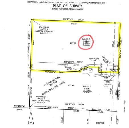Est $1,829/moTimbered acreage lot North of Glenwood on a hard surface road located in the excellent Glenwood School District just 20 - 25 minutes from downtown Omaha. Western Iowa high speed fiber internet is available. There is an old well just North of the driveway that may be able to still be used. Driveway entrance is shared with the neighbor to the South. Land is 6.05 gross acres and 5.69 next taxable acres. This is a new split, so the property taxes are To Be Determined by Mills County. Timber, wildlife, peace and quiet! No covenants.