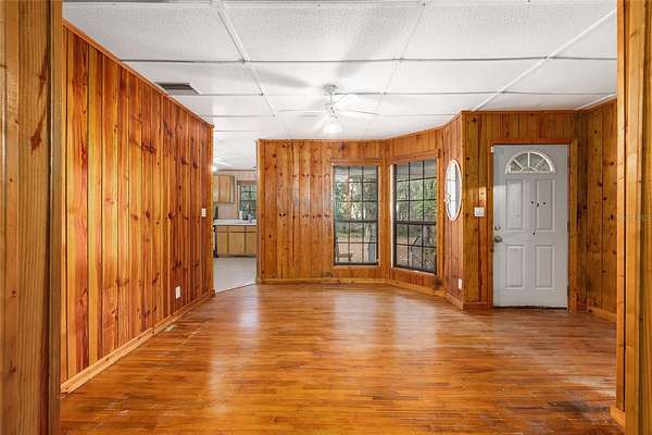 If privacy is what you are looking for then look no longer! 5 wooded acres with a solid built 3 bedroom, 2 full bathrooms and 1 half bathroom, with over 2,000 sq ft heated and AC home. This is a solid built home constructed by Father and Son and built on a 7 block perimeter stem wall. The home will need someone handy with tools and a vision that can see the potential that this home has. Whether you are an investor or a DIY family, looking for that perfect place in the woods, this property offers the privacy and solitude that we all crave in todays busy world. No HOA and a 5 acre buffer of woods from highway 42, near The Villages and beautiful, small town, Belleview Fl. The area is surrounded by horse farms and beautiful homesites that exudes that countryside feel but just 5 minutes from shopping and all major highways that access I-75 and the Florida Turnpike for an easy commute to Orlando International Airport.