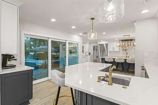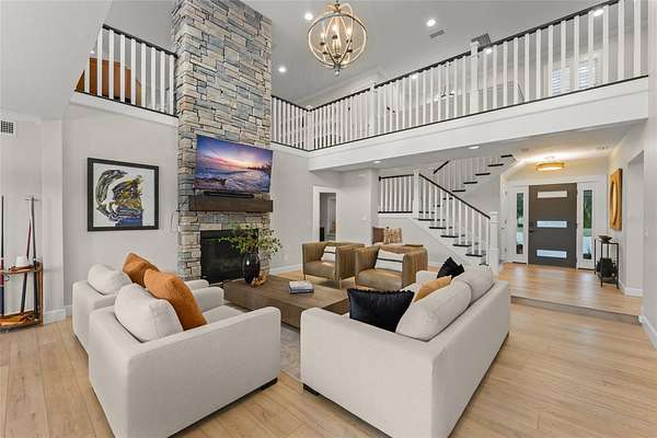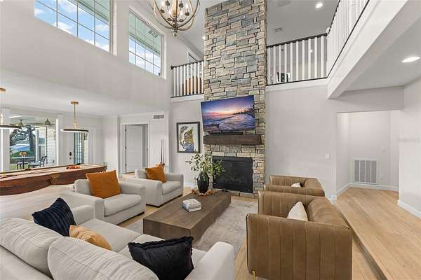 Welcome to 5538 W Lake Butler Road--an expansive, newly renovated estate set on 1.9 acres of lush, lakefront land in arguably one of Central Florida's most coveted locations, Kelso on Lake Butler. What distinguishes this property is its remarkable dual lake access. Your own private boat dock provides direct skiable waterfront on Lake Davis, while exclusive community privileges grant you gated access to Kelso's private boat ramp on the prestigious Butler Chain of Lakes. This convergence of private waterfront with chain-of-lakes connectivity creates unparalleled boating and recreational opportunities found in few lakefront estates. The expansive grounds and recent outdoor enhancements create an entertainer's paradise that is second to none! A newly upgraded outdoor bar and grill area, resort-caliber pool and spa, and sweeping lawn frame breathtaking sunset views over the water. Boasting 6 bedrooms, 6 bathrooms, 3 car garage, and more than 6,000 square feet of living space, this custom estate offers privacy, scale, and unforgettable lakefront views from nearly every room. From the moment you arrive, the chic coastal architecture, circular drive, and sprawling presence command attention. Step inside to dramatic 25-foot ceilings in the living room with a two story stacked stone fireplace and walls of glass that dissolve the boundary between interior luxury and lakefront beauty. An adjacent sun-filled flex room provides tranquil views of Lake Davis, while the completely remodeled chef's kitchen, with its oversized island, custom cabinetry, high end appliances, adjacent indoor bar and generous family room, is designed for both intimate moments as well as large scale entertaining.