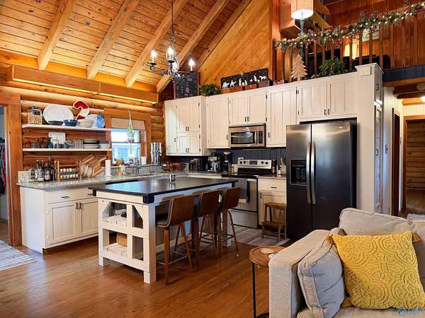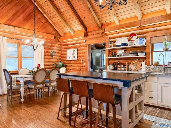 Escape to the beauty of country living! This remarkable log cabin retreat sits on 7.3 picturesque acres and offers the space, privacy, and charm so many dream of. The main cabin features rich wood details, soaring ceilings, and a warm, inviting atmosphere that instantly feels like home. A separate guest home provides flexible space for extended family, guests, or potential rental use. The barn adds even more versatility for storage, hobbies, or livestock, and the property is already equipped with farm fencing, ready for animals to graze. Surrounded by peaceful scenery, this property blends rustic elegance with everyday functionality, offering a rare opportunity to enjoy country living.